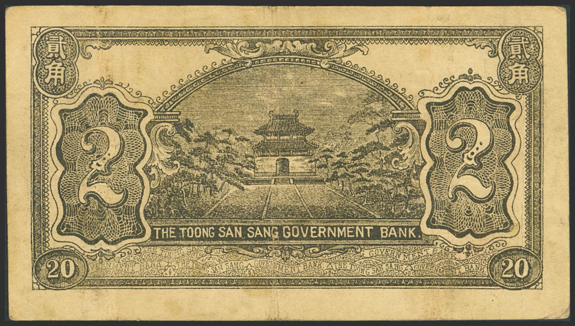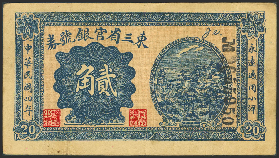 CHINA. 2 Chiao. 1915. Toong San Sang Government Bank. Manchuria. (Pick: S2882A). More than Very Fine.