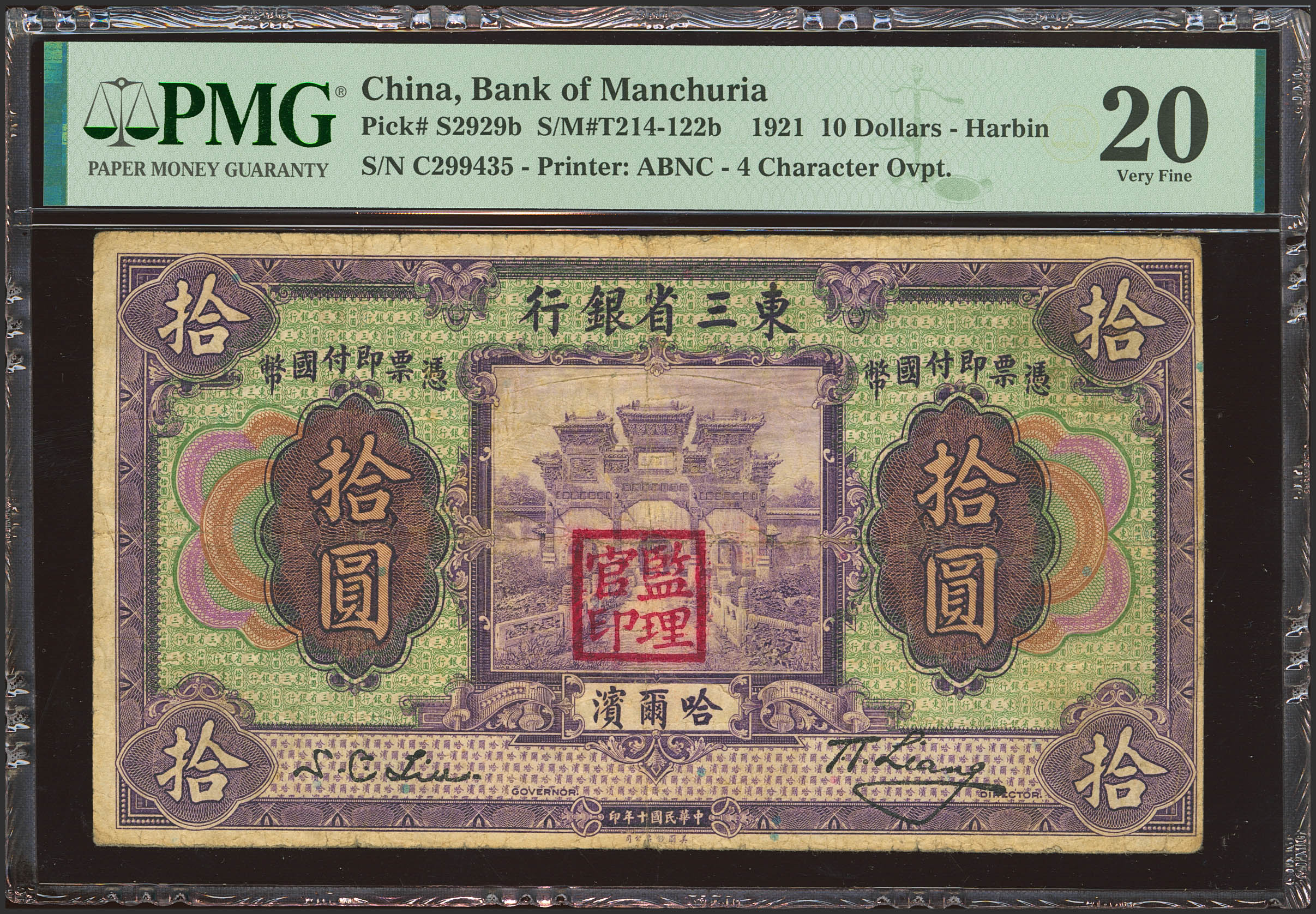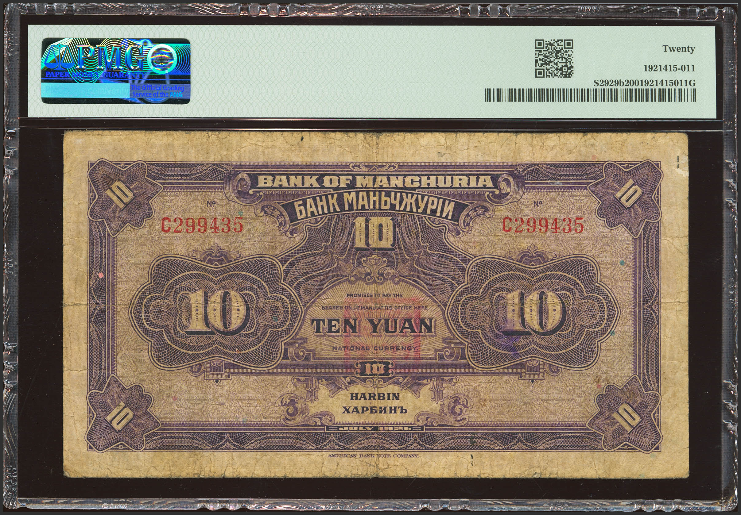 CHINA. 10 Yuan. July 1921. Bank of Manchuria. (Pick: S2929b, SM: T214-122b). PMG20.