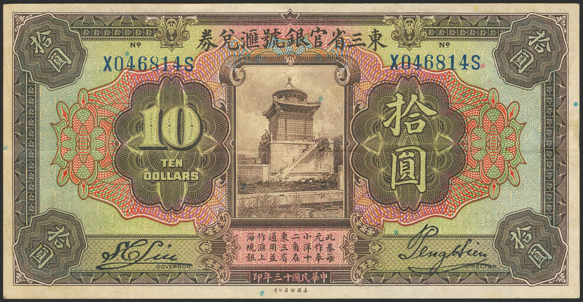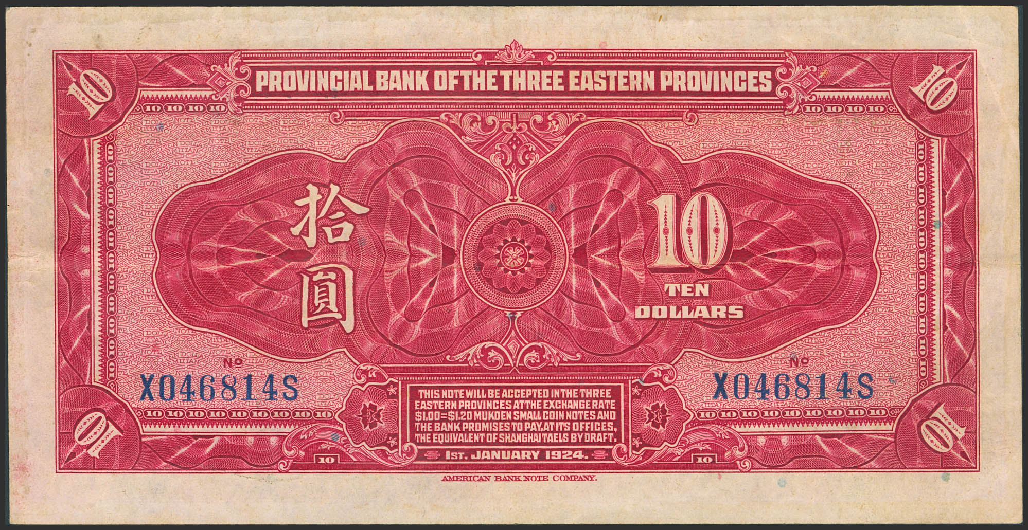 CHINA. 10 Dollars. 1 January 1924. Provincial Bank of the Three Eastern Provinces. 65 x 84 mm. (Pick: S2953b). More than Very Fine.