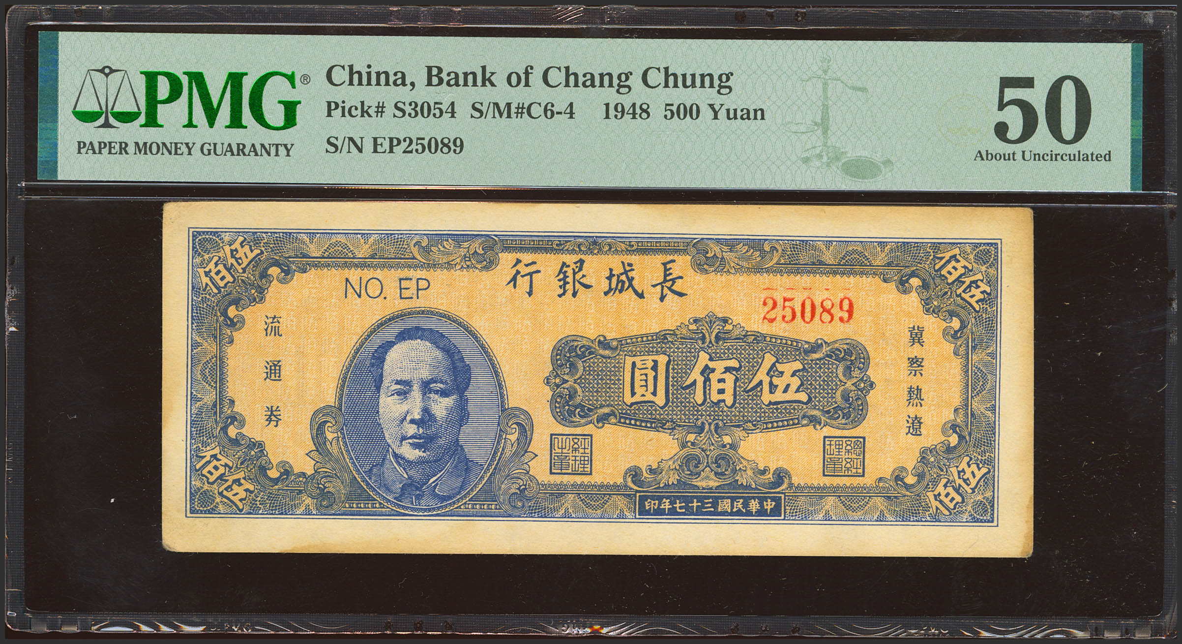 CHINA. 500 Yuan. 1948. Bank of Chang Chung. (Pick: S3054, SM: C6-4). PMG50 (toning).