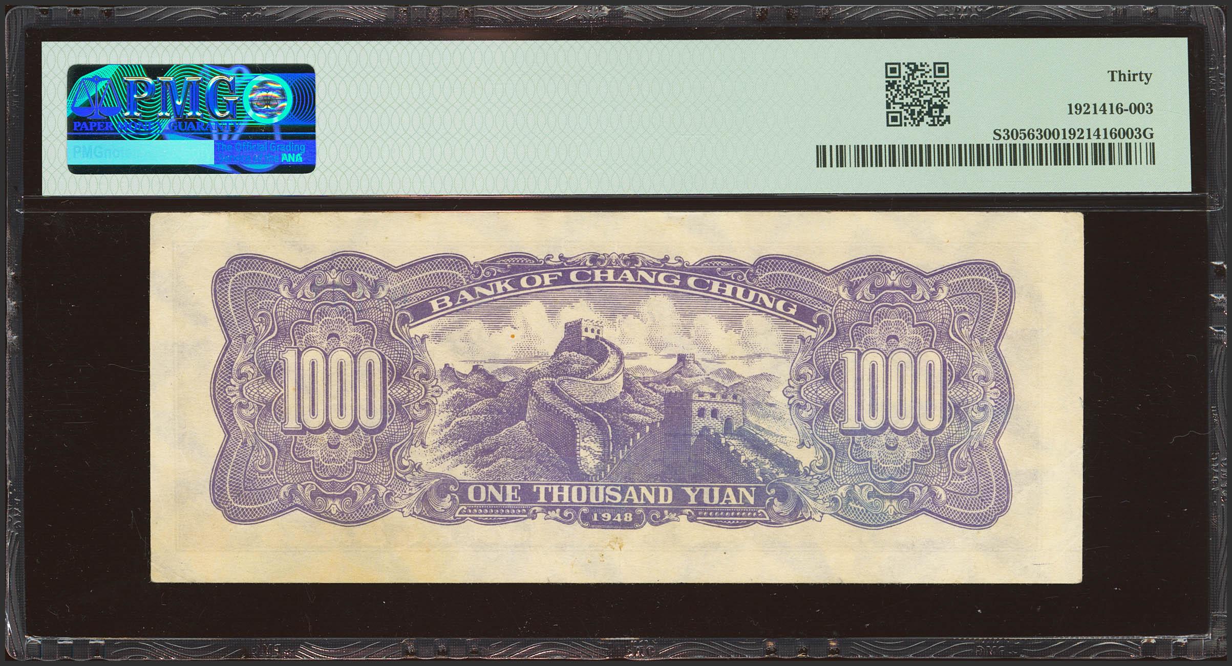 CHINA. 1000 Yuan. 1948. Bank of Chang Chung. (Pick: S3056, SM: C6-6). PMG30.