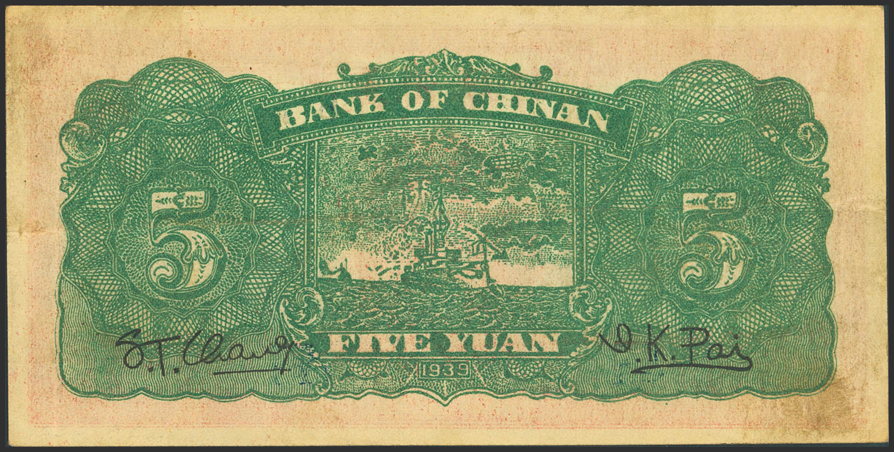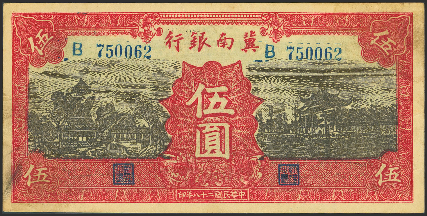 CHINA. 5 Yuan. 1939. Bank of Chinan. (Pick: S3069C). More than Very Fine.