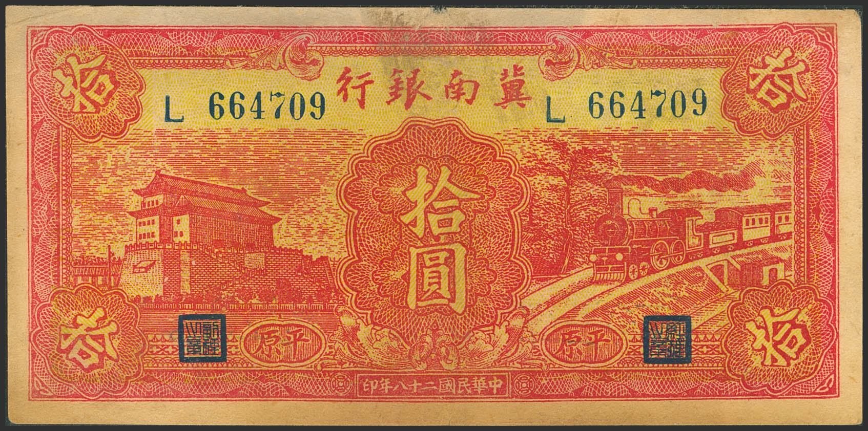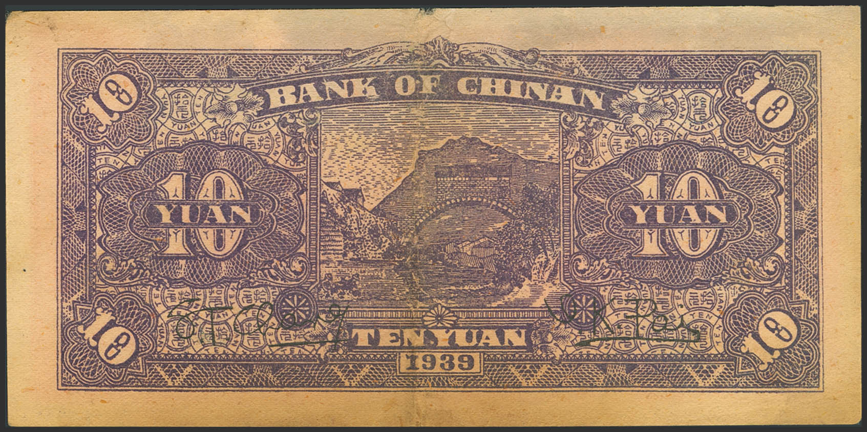 CHINA. 10 Yuan. 1939. Bank of Chinan. (Pick: S3070A). More than Very Fine.