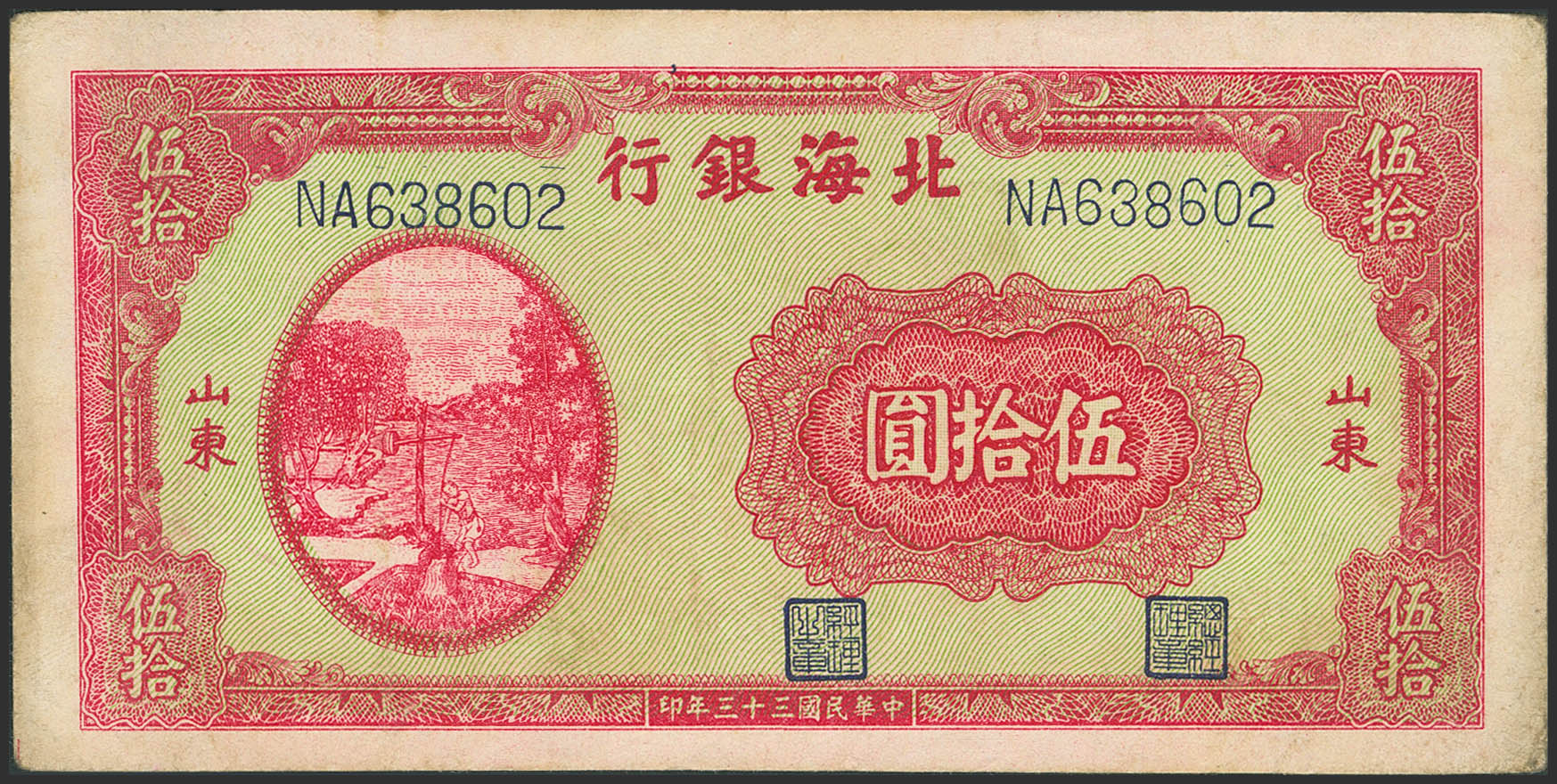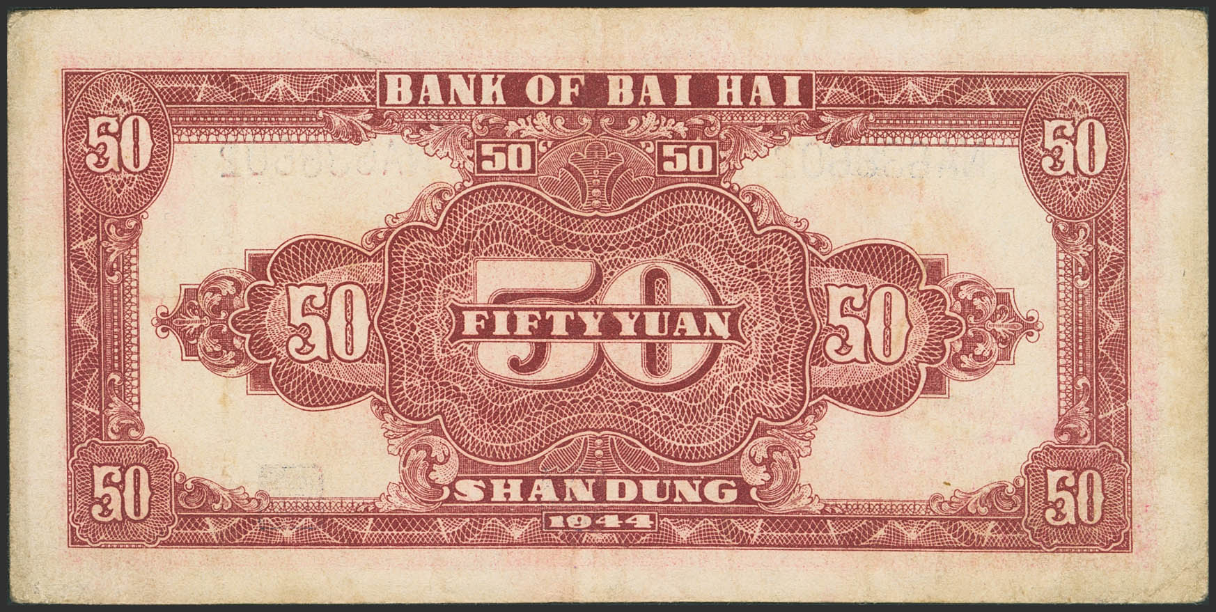 CHINA. 50 Yuan. 1944. Bank of Bai Hai. Shandung. (Pick: S3070b). More than Very Fine.