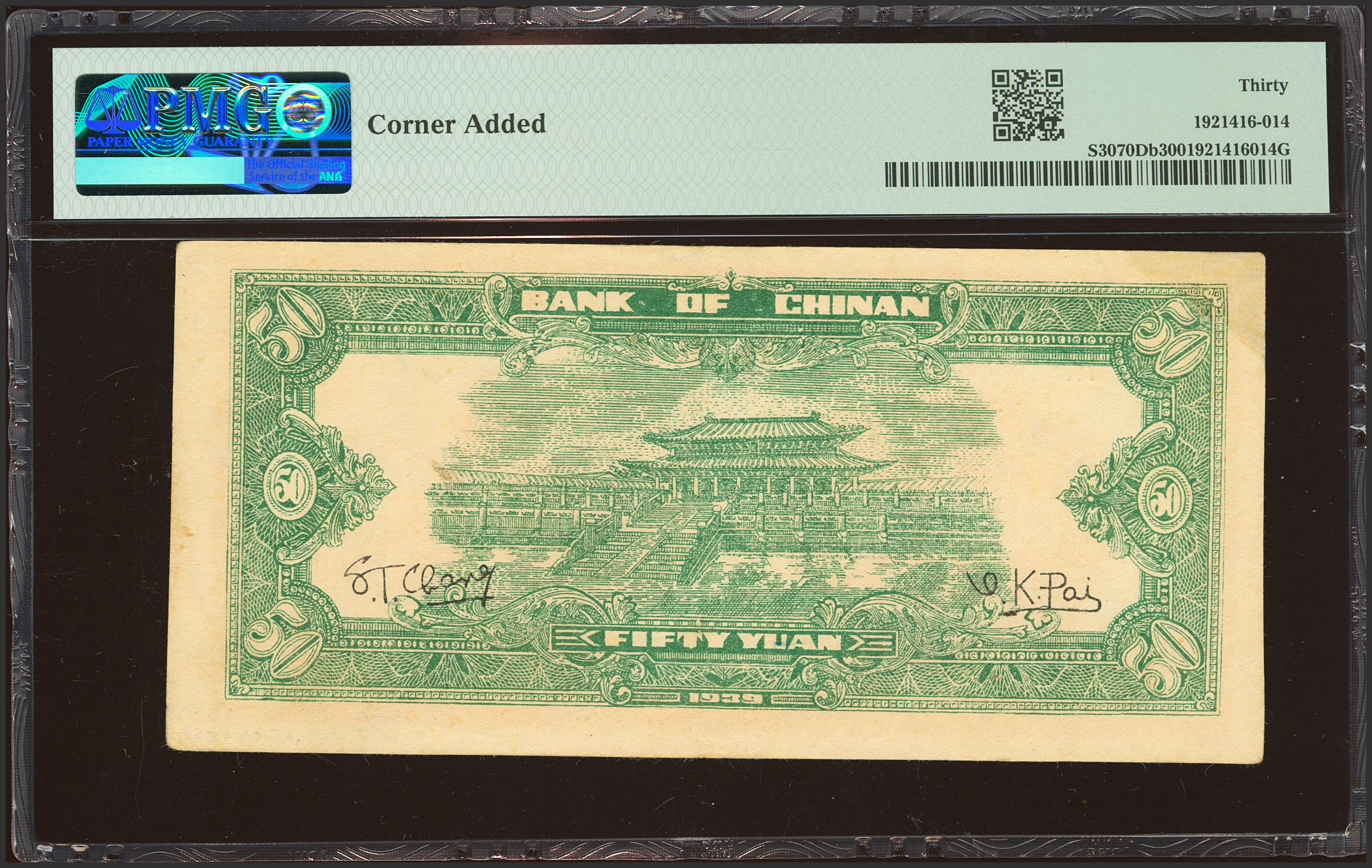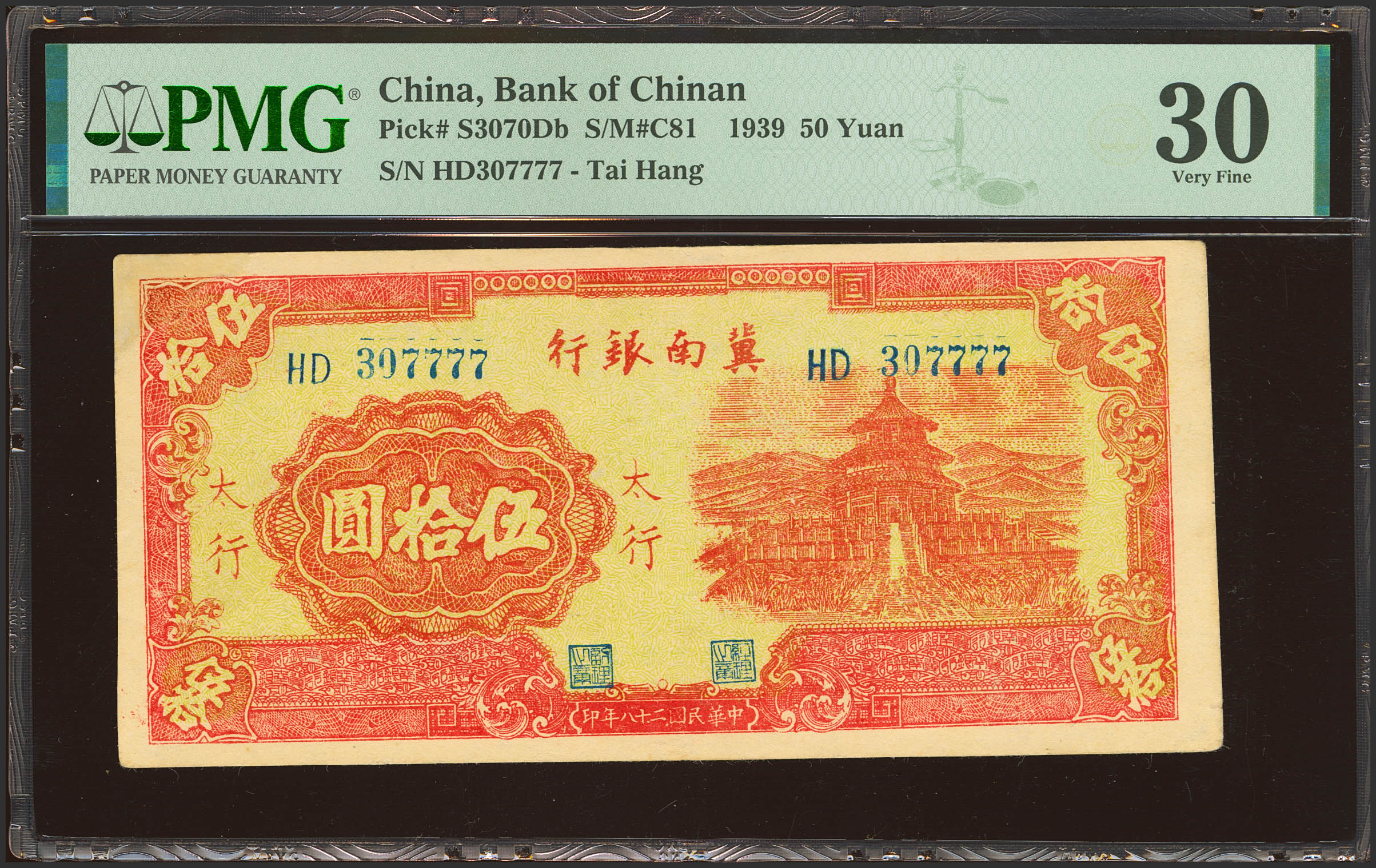 CHINA. 50 Yuan. 1939. Bank of Chinan. T’ai Hang. (Pick: S3070Db, SM: C81). PMG30 (corner added).