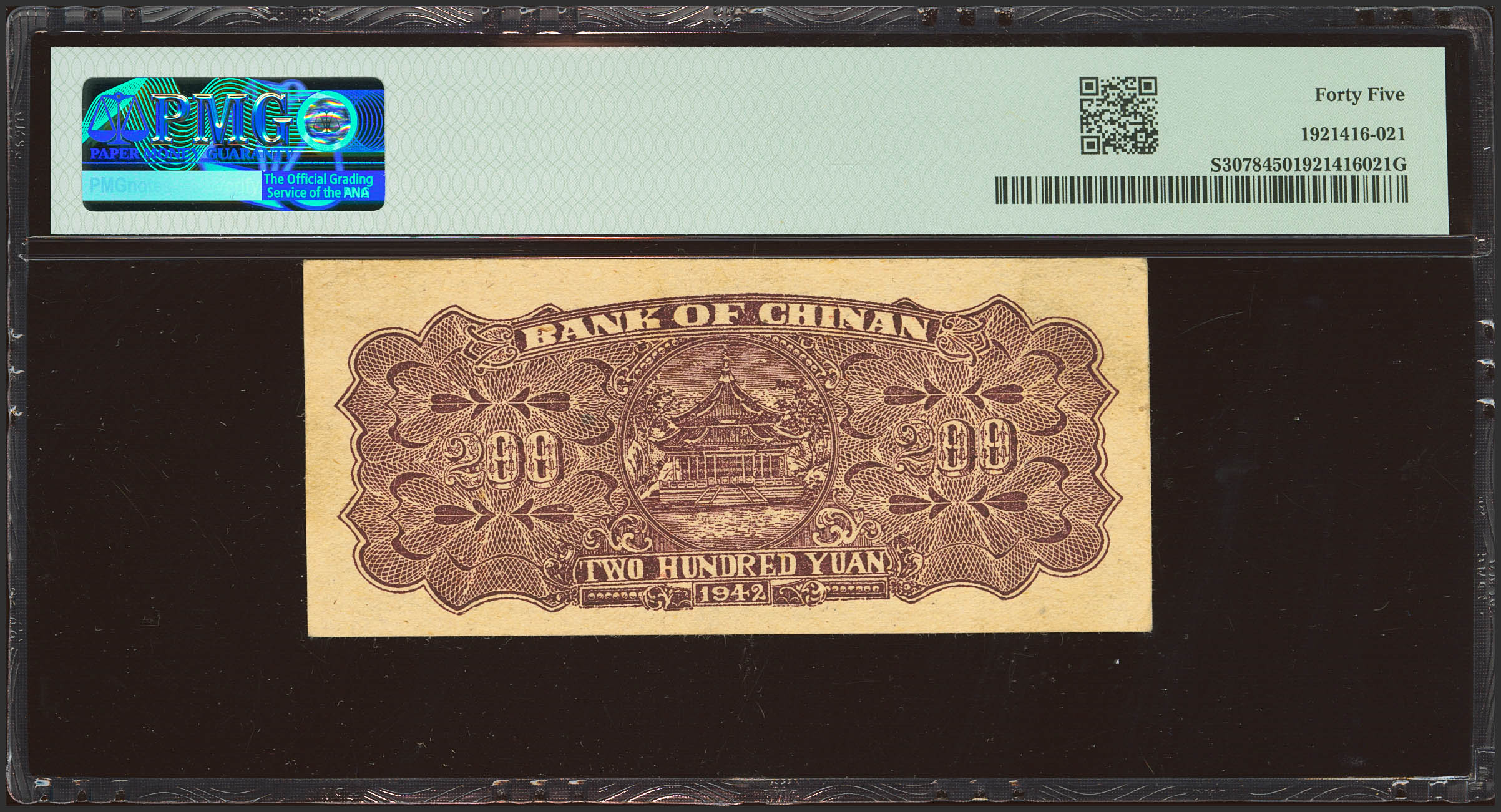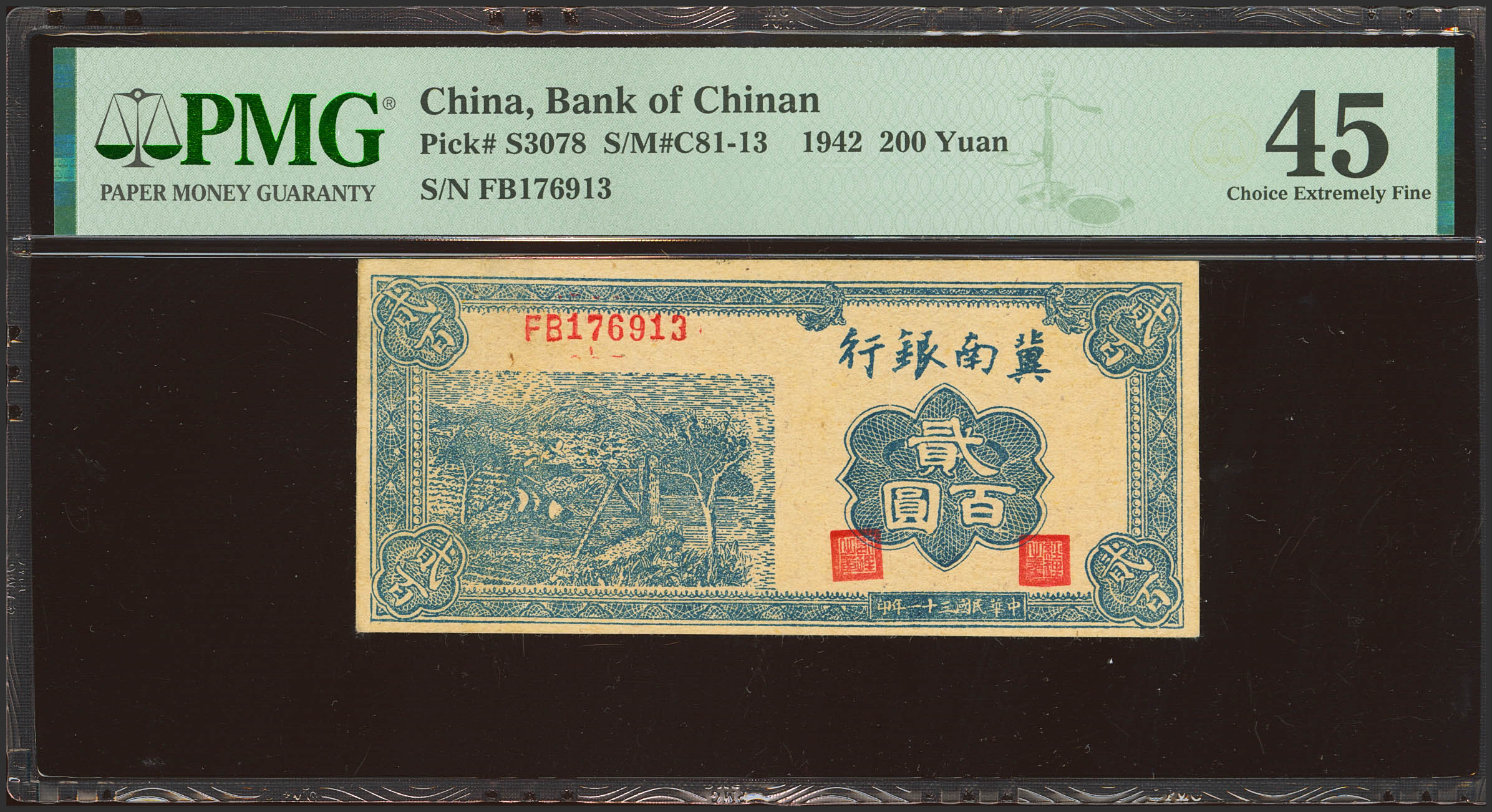 CHINA. 200 Yuan. 1942. Bank of Chinan. (Pick: S3078, SM: C81-13). PMG45.
