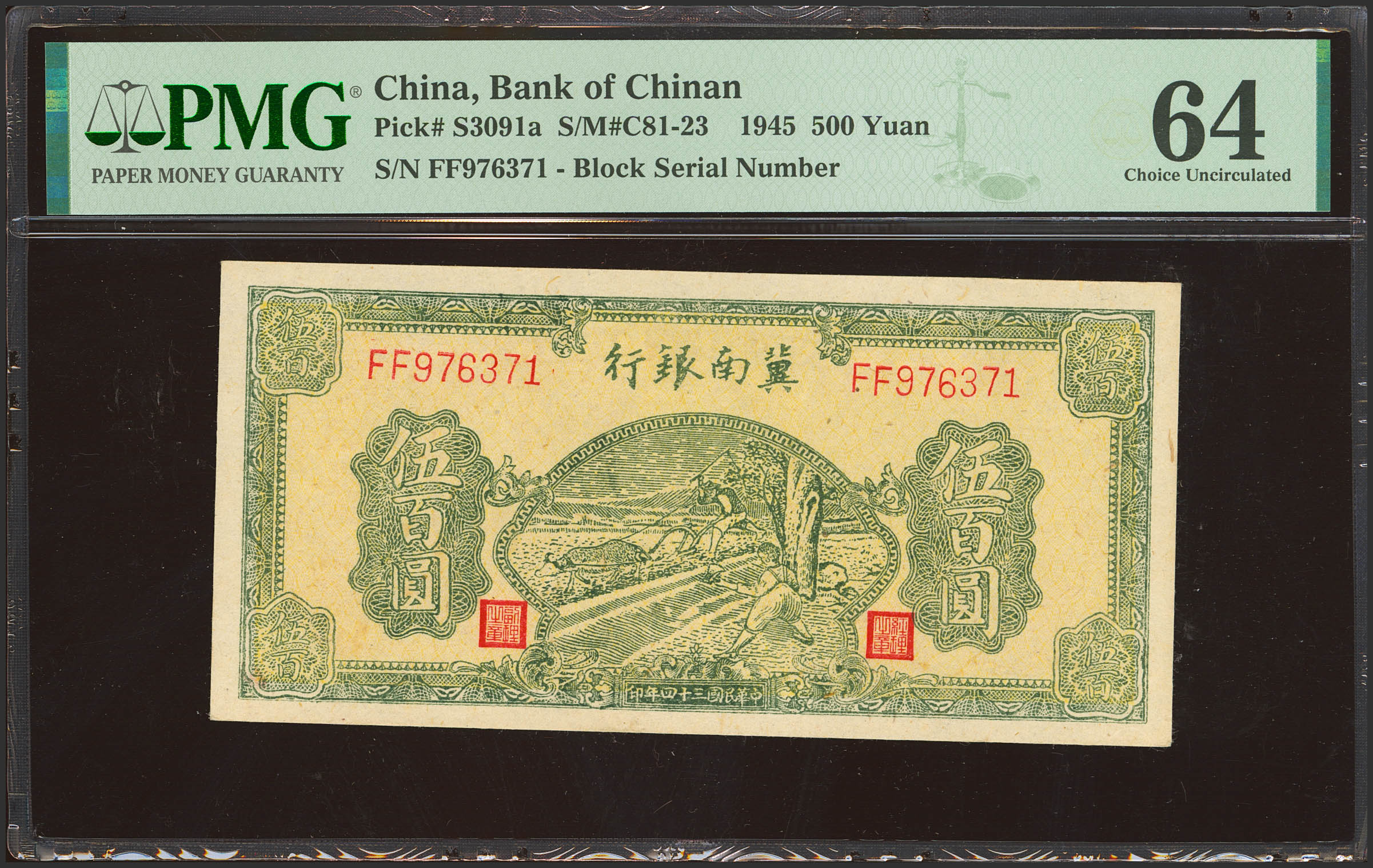 CHINA. 500 Yuan. 1945. Bank of Chinan. (Pick: S3090A, SM: C81-23). PMG64.