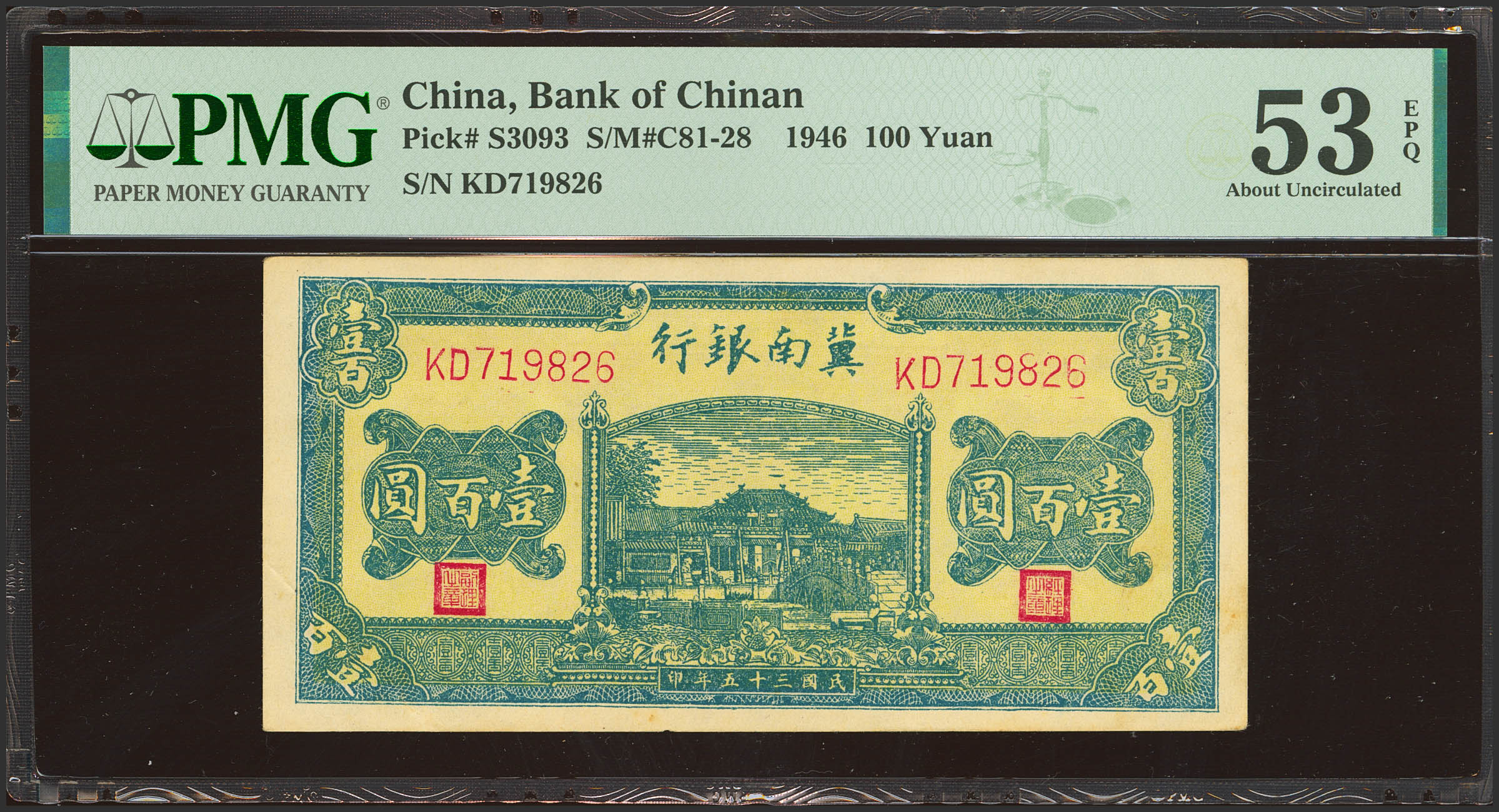 CHINA. 100 Yuan. 1946. Bank of Chinan. (Pick: S3093, SM: C81-28). PMG53EPQ.
