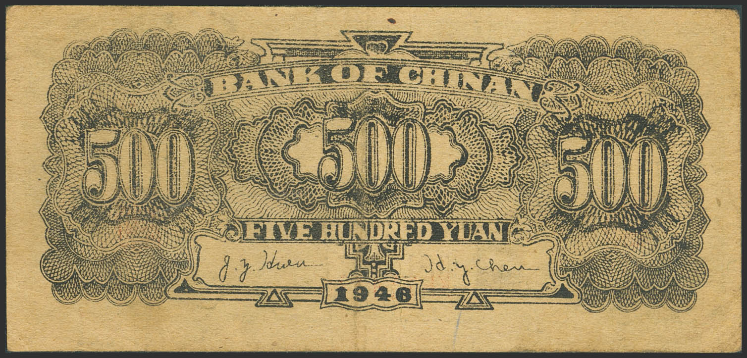 CHINA. 500 Yuan. 1946. Bank of Chinan. (Pick: S3095). Extremely Fine.