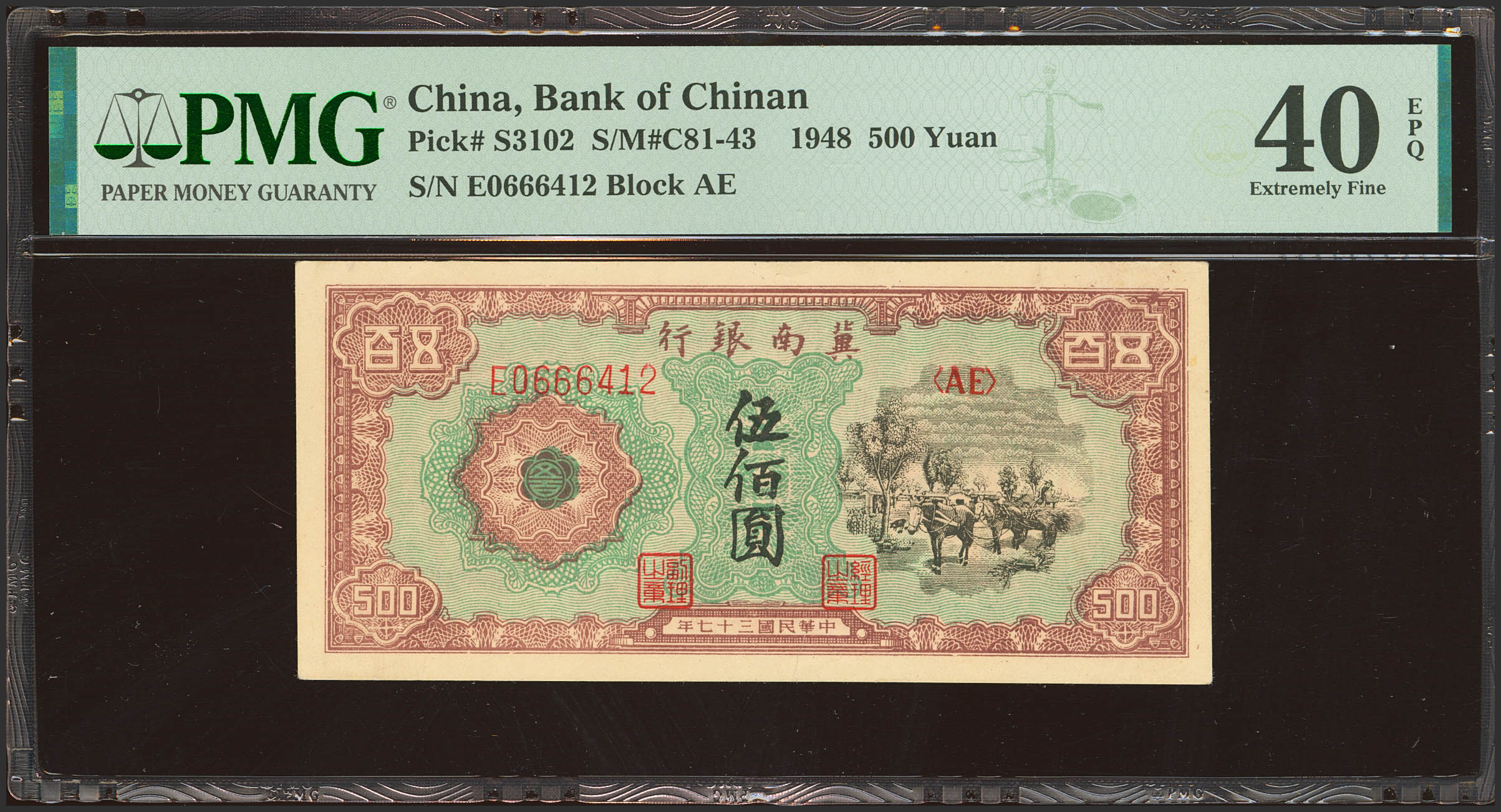 CHINA. 500 Yuan. 1948. Bank of Chinan. (Pick: S3102, SM: C81-43). PMG40EPQ.