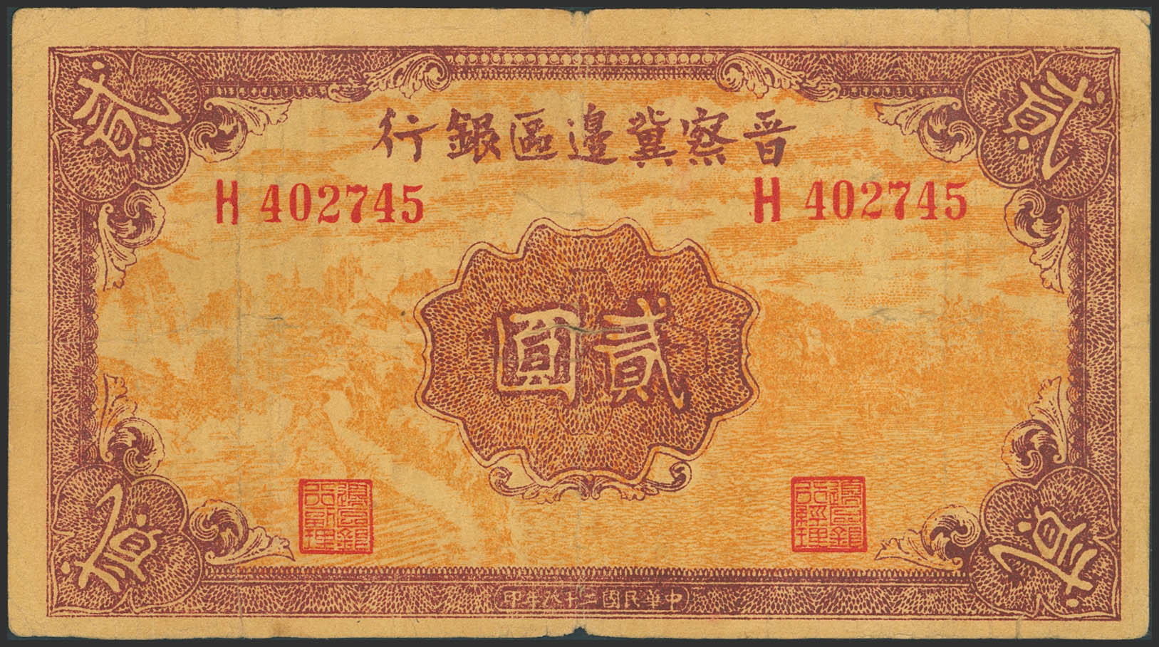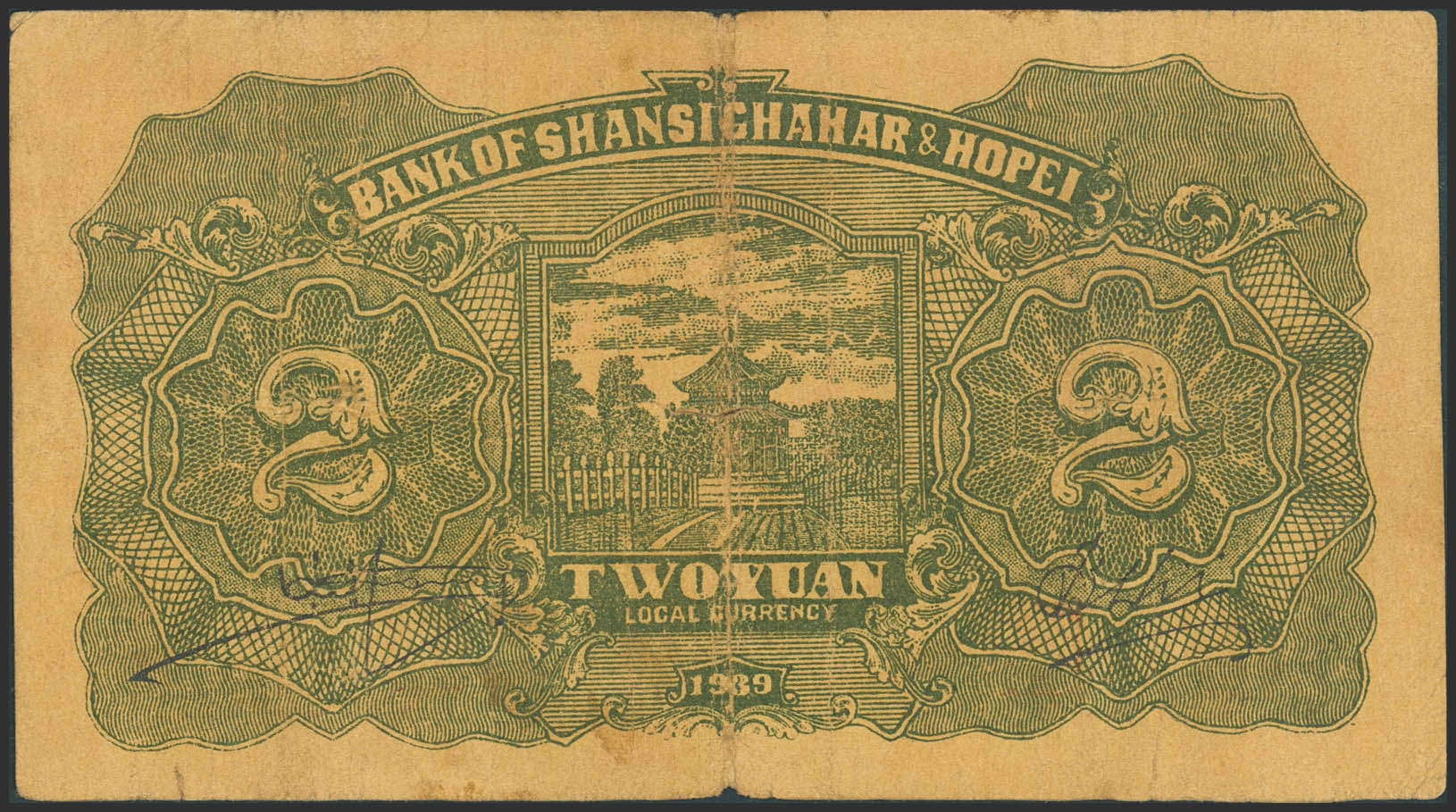 CHINA. 2 Yuan. 1939. Bank of Shansi. Chahar and Hopei. (Pick: S3148). Very Fine.