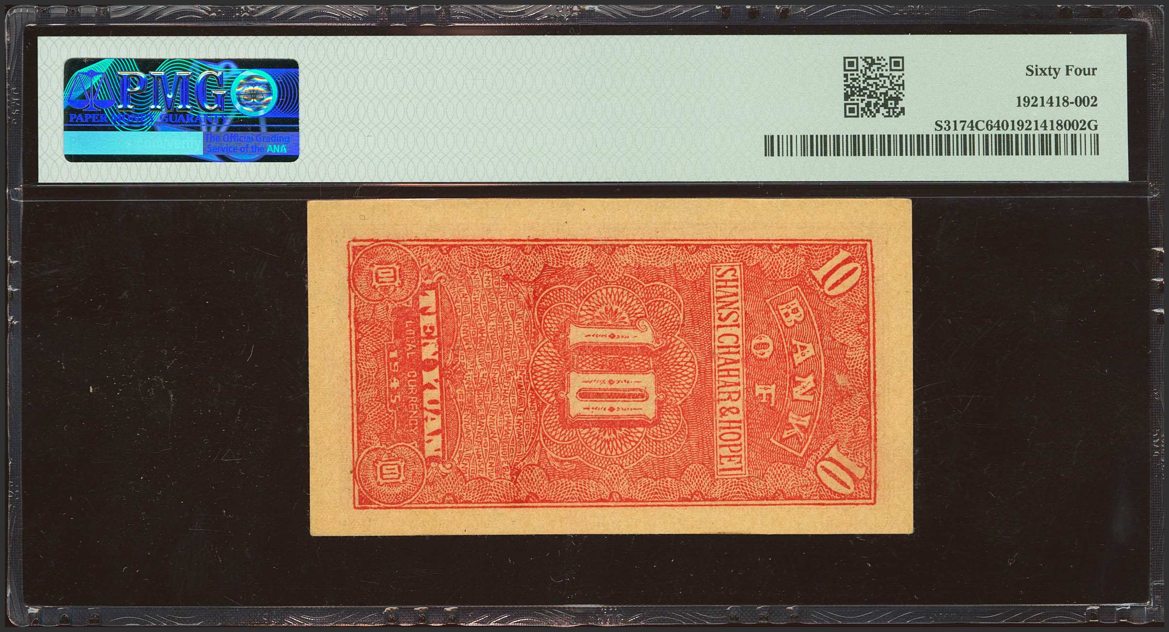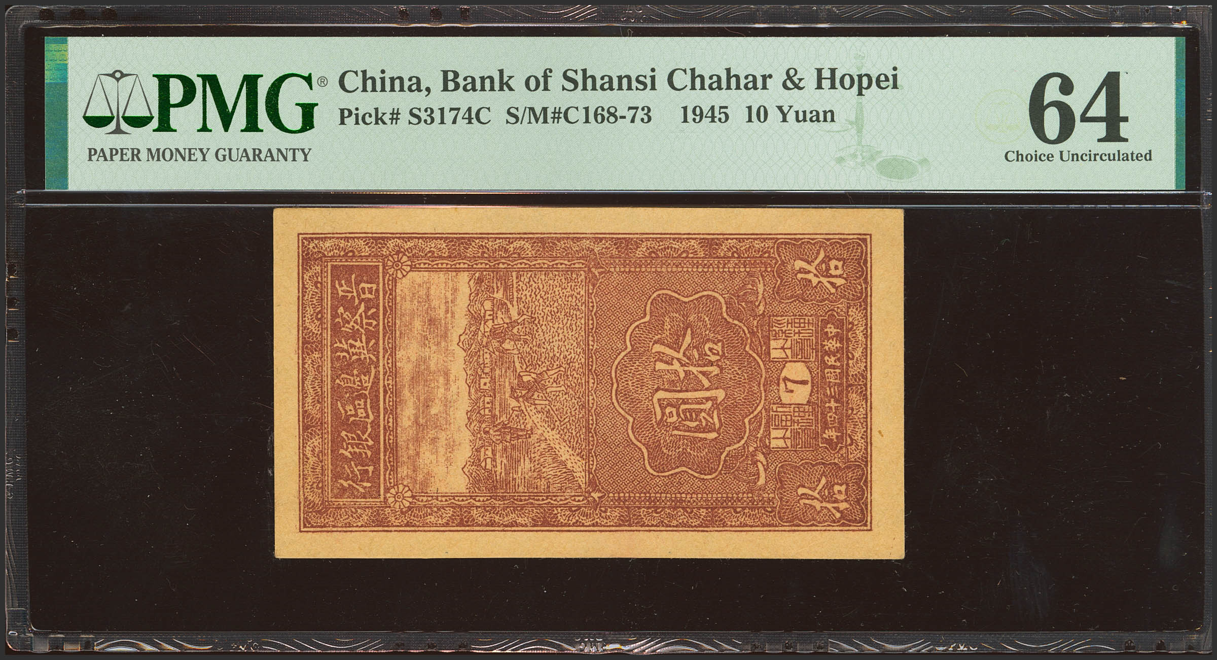 CHINA. 10 Yuan. 1945. Bank of Shansi. Chahar and Hopei. (Pick: S3174C, SM: C168-73). PMG64.