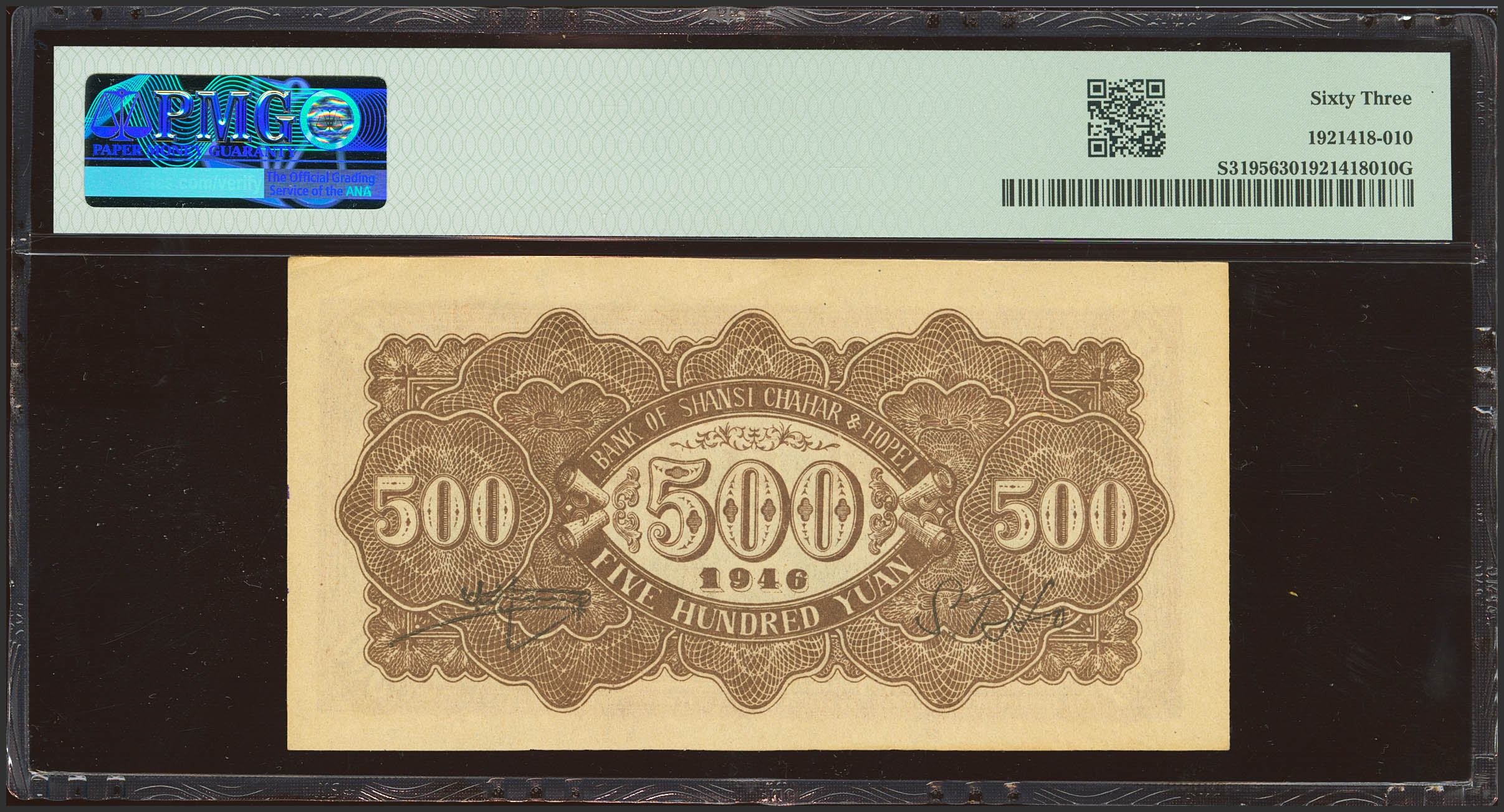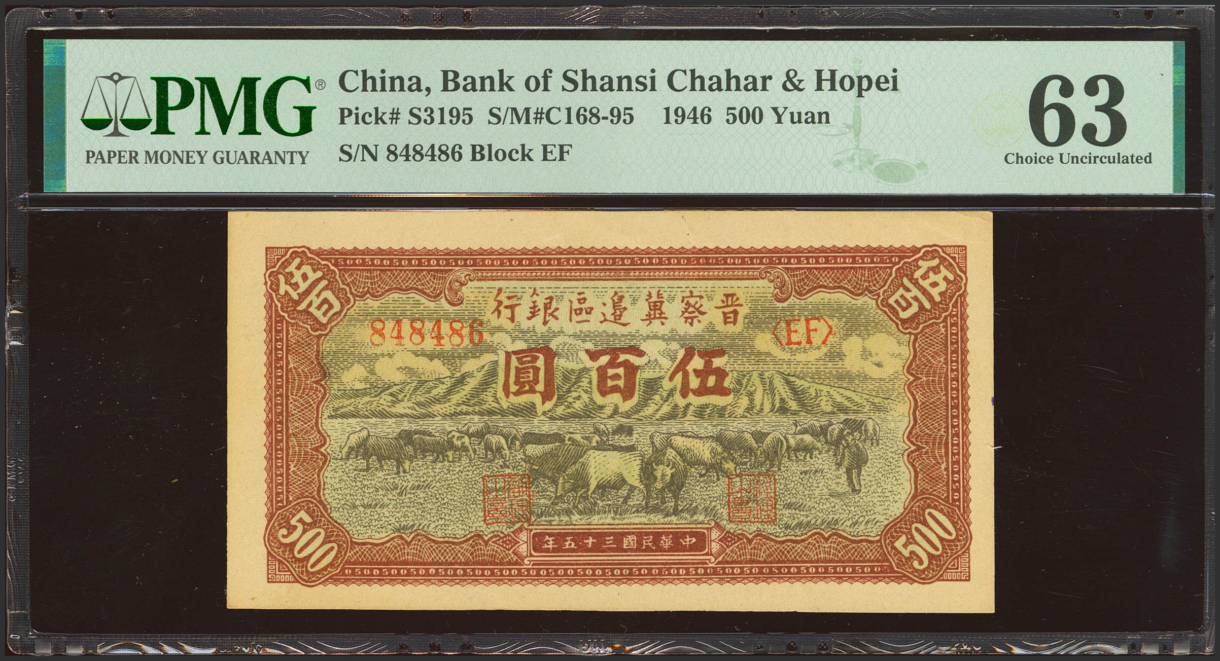 CHINA. 500 Yuan. 1946. Bank of Shansi. Chahar and Hopei. (Pick: S3195, SM: C168-95). PMG63.