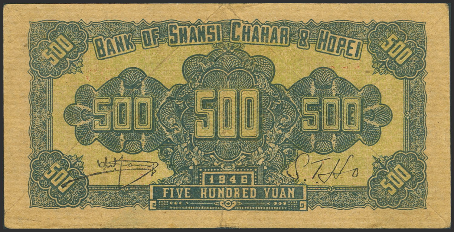 CHINA. 500 Yuan. 1946. Bank of Shansi. Chahar and Hopei. (Pick: S3198). More than Very Fine.