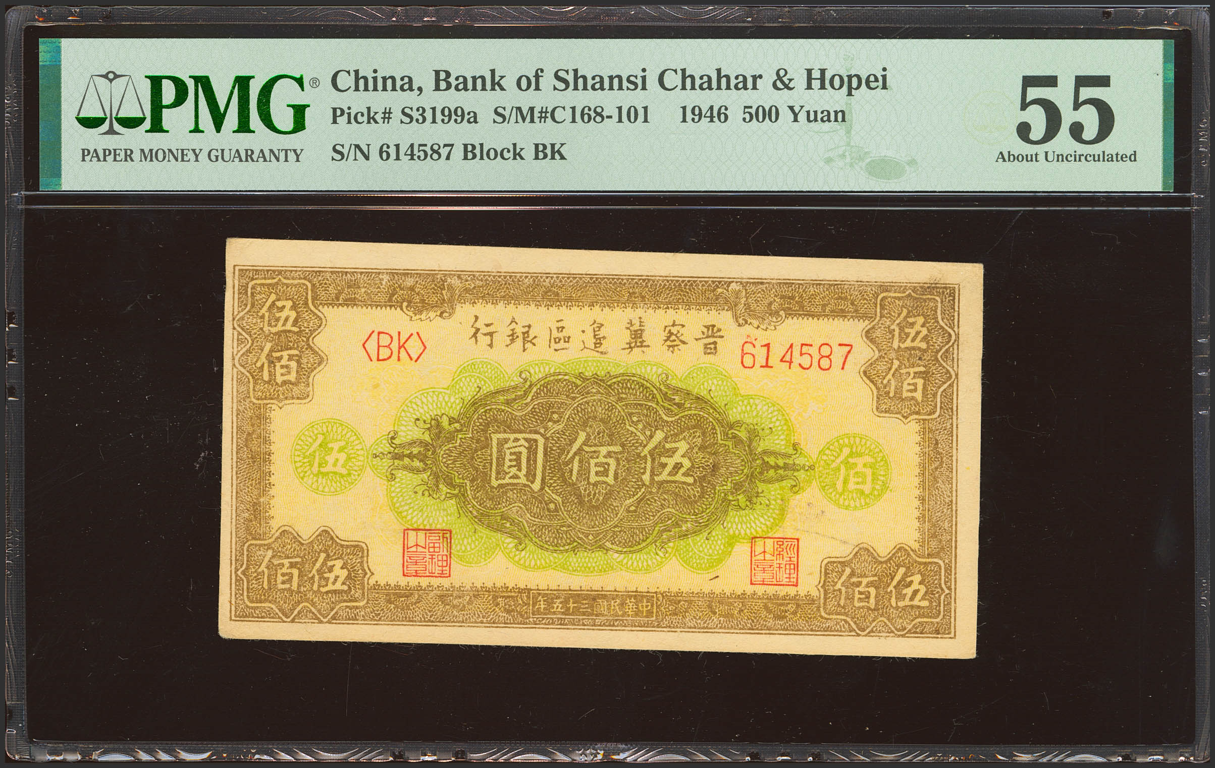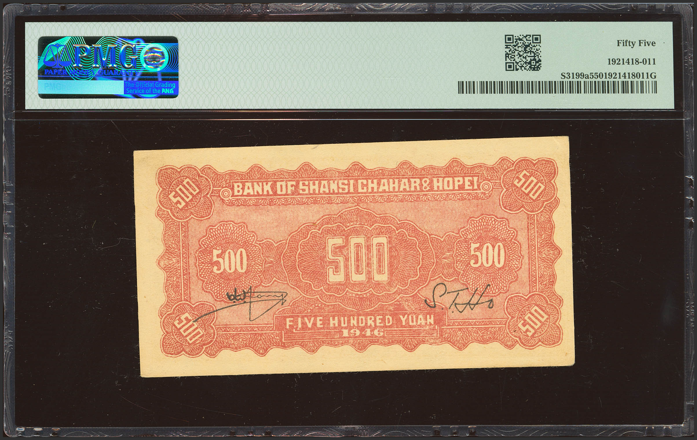 CHINA. 500 Yuan. 1946. Bank of Shansi. Chahar and Hopei. (Pick: S3199a, SM: C168-101). PMG55.