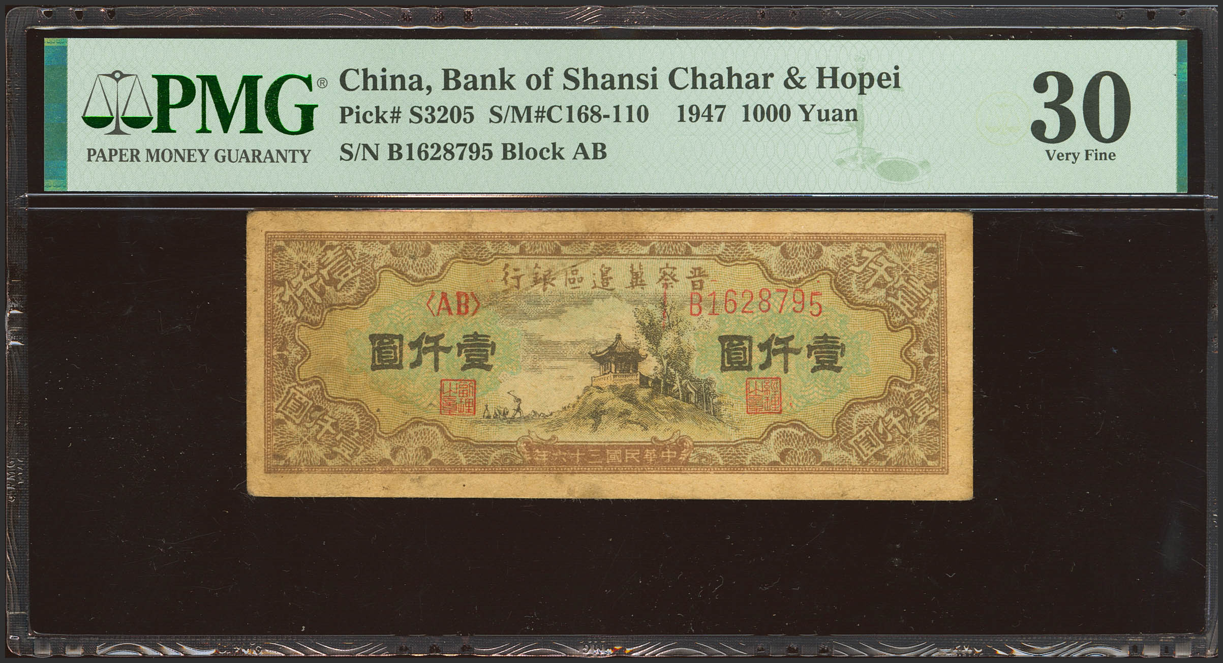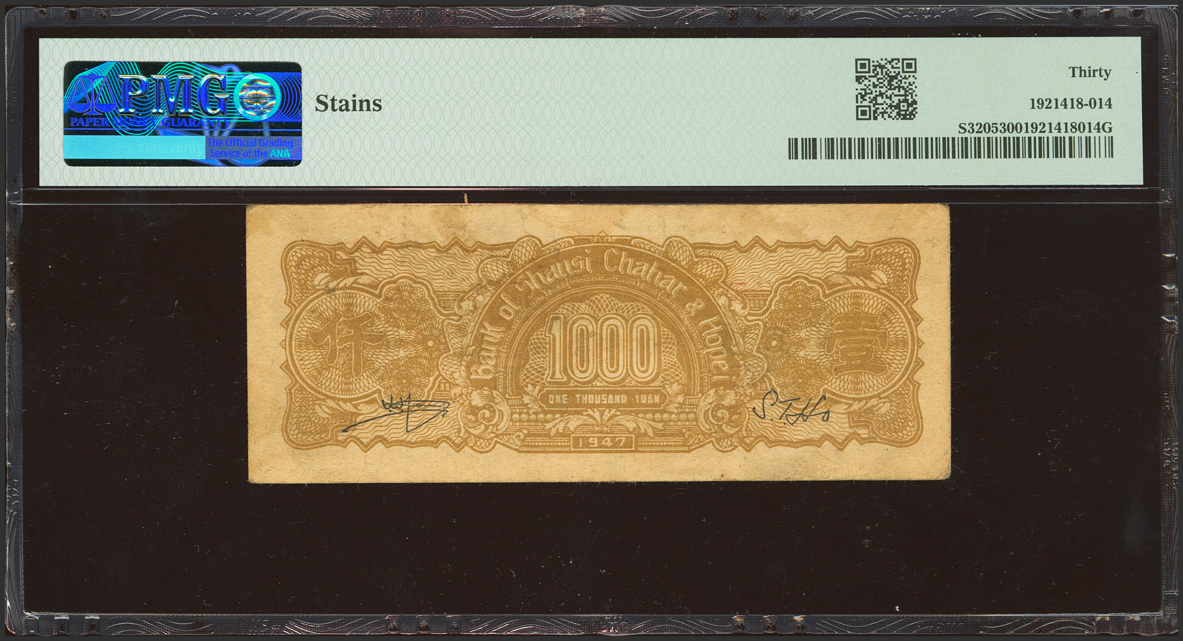CHINA. 1000 Yuan. 1947. Bank of Shansi. Chahar and Hopei. (Pick: S3205, SM: C168-110). PMG30 (stains).