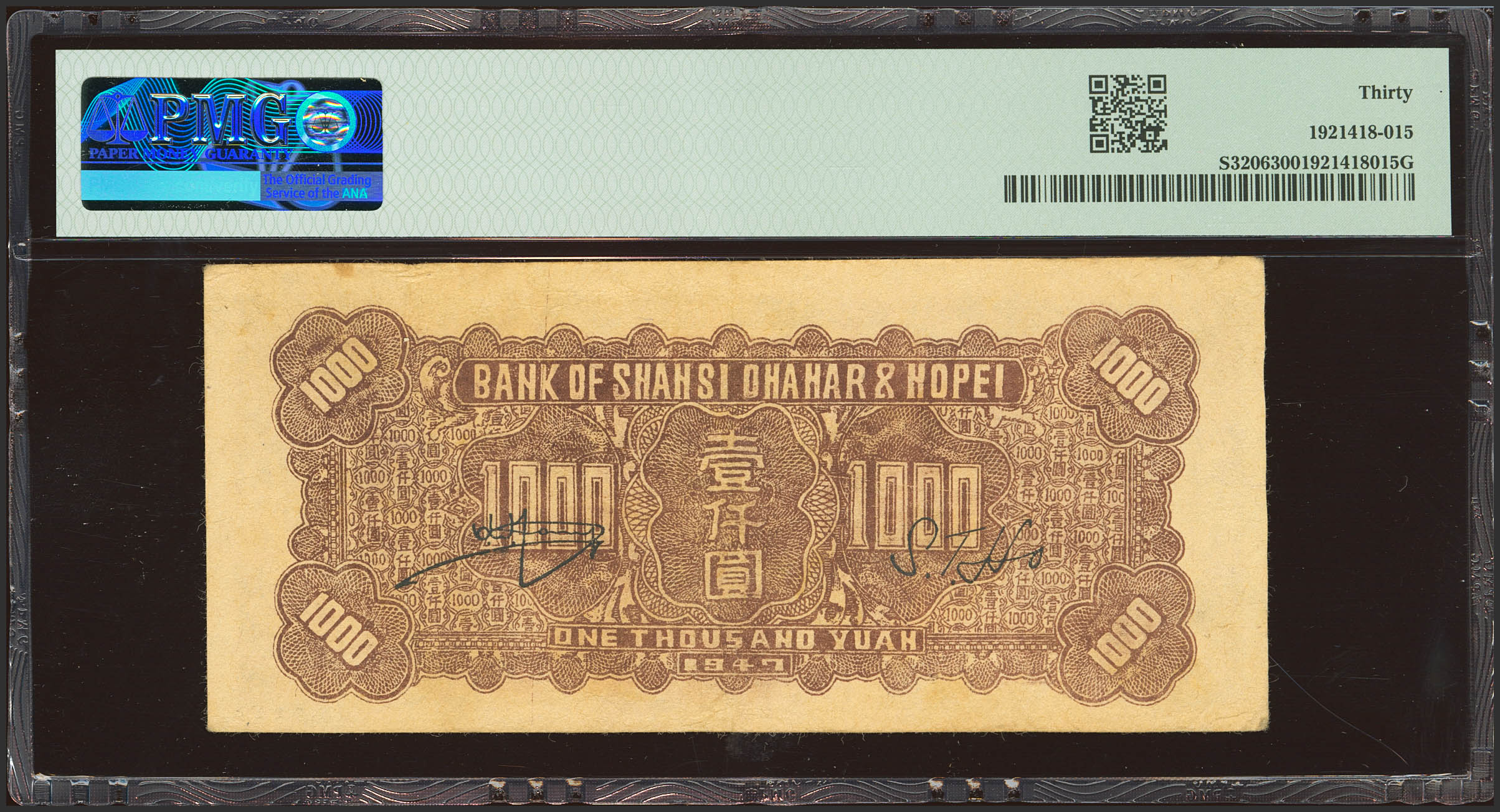 CHINA. 1000 Yuan. 1947. Bank of Shansi. Chahar and Hopei. (Pick: S3206, SM: C168-111). PMG30.