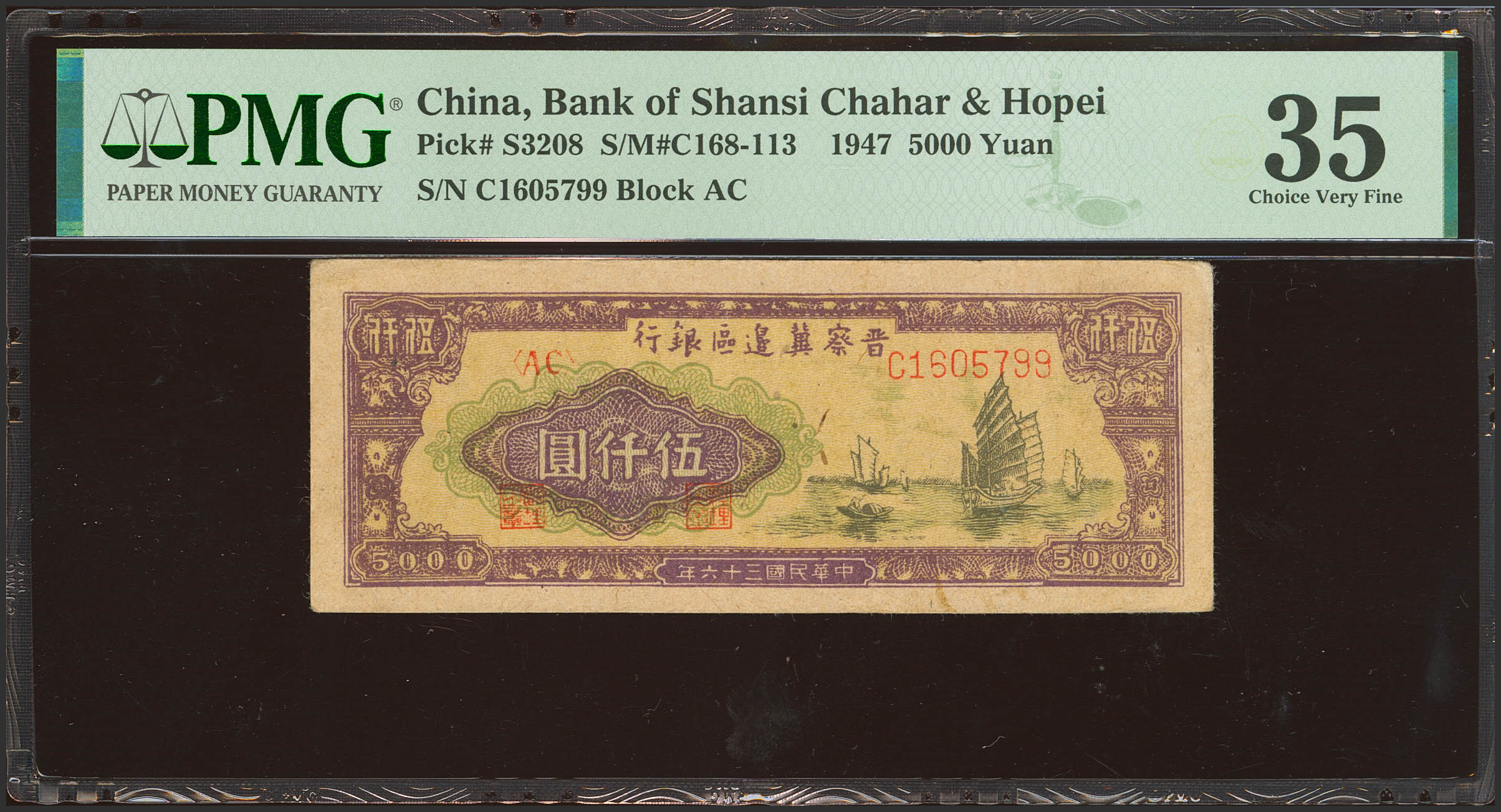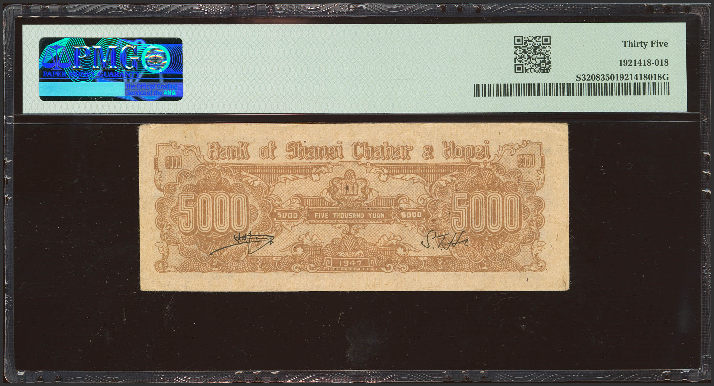 CHINA. 5000 Yuan. 1947. Bank of Shansi. Chahar and Hopei. (Pick: S3208, SM: C168-113). PMG35.