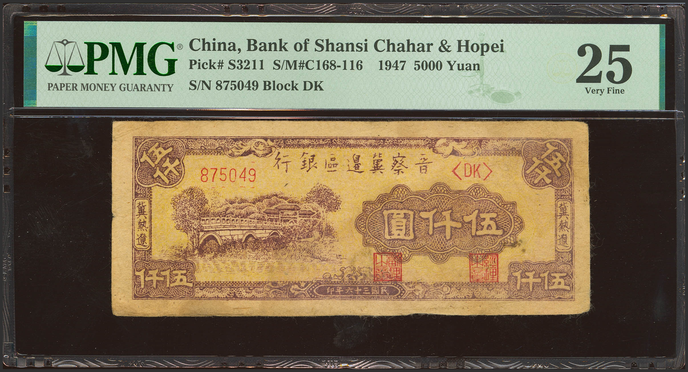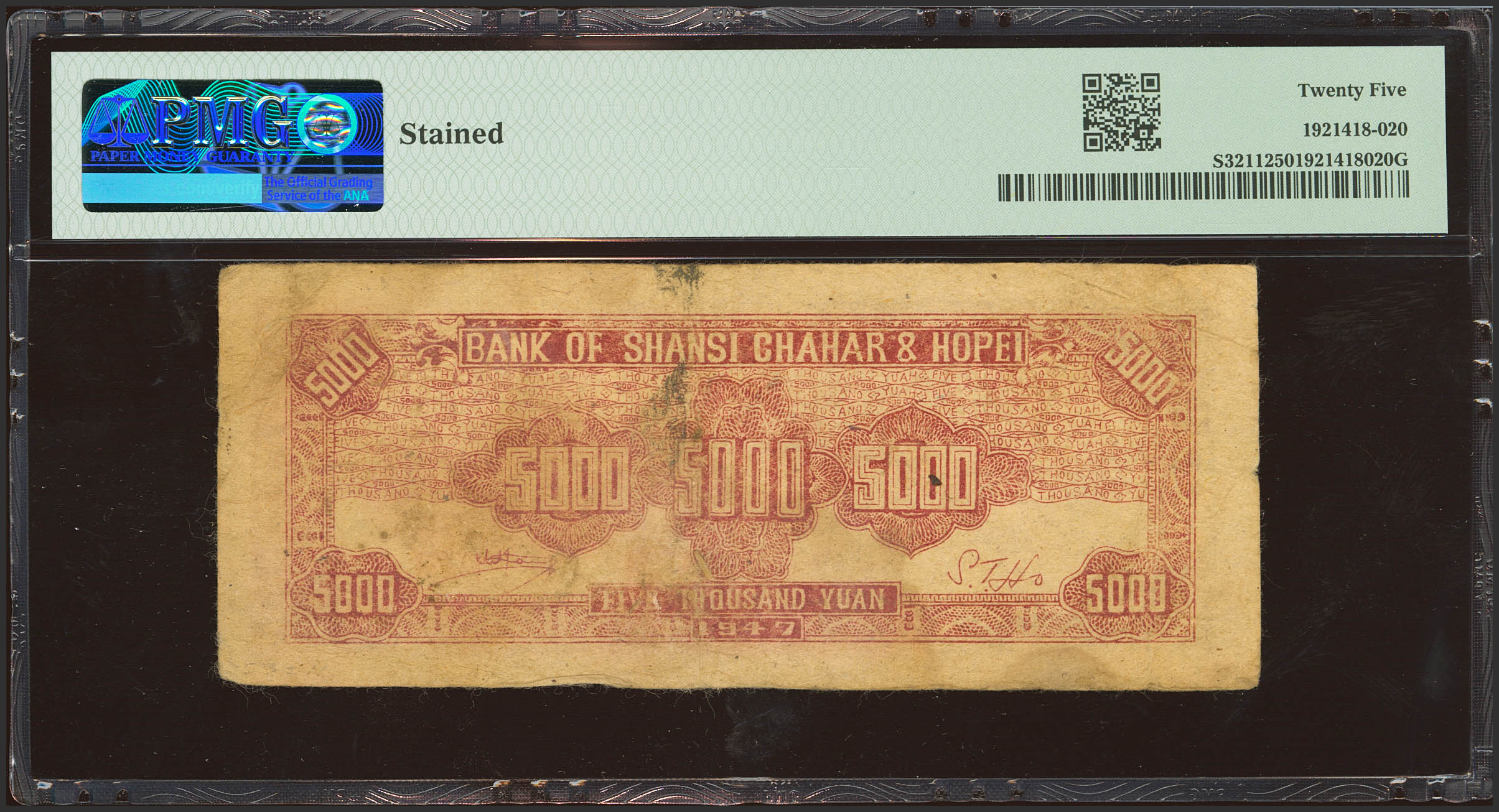 CHINA. 5000 Yuan. 1947. Bank of Shansi. Chahar and Hopei. (Pick: S3211, SM: C168-116). PMG25 (stained).