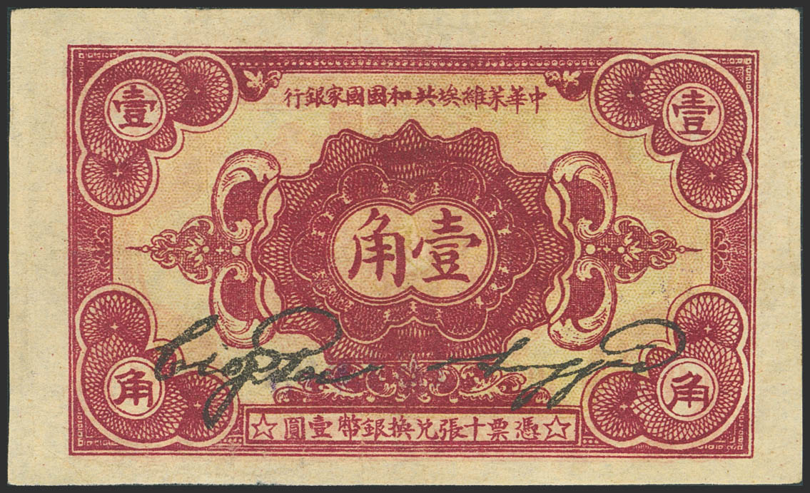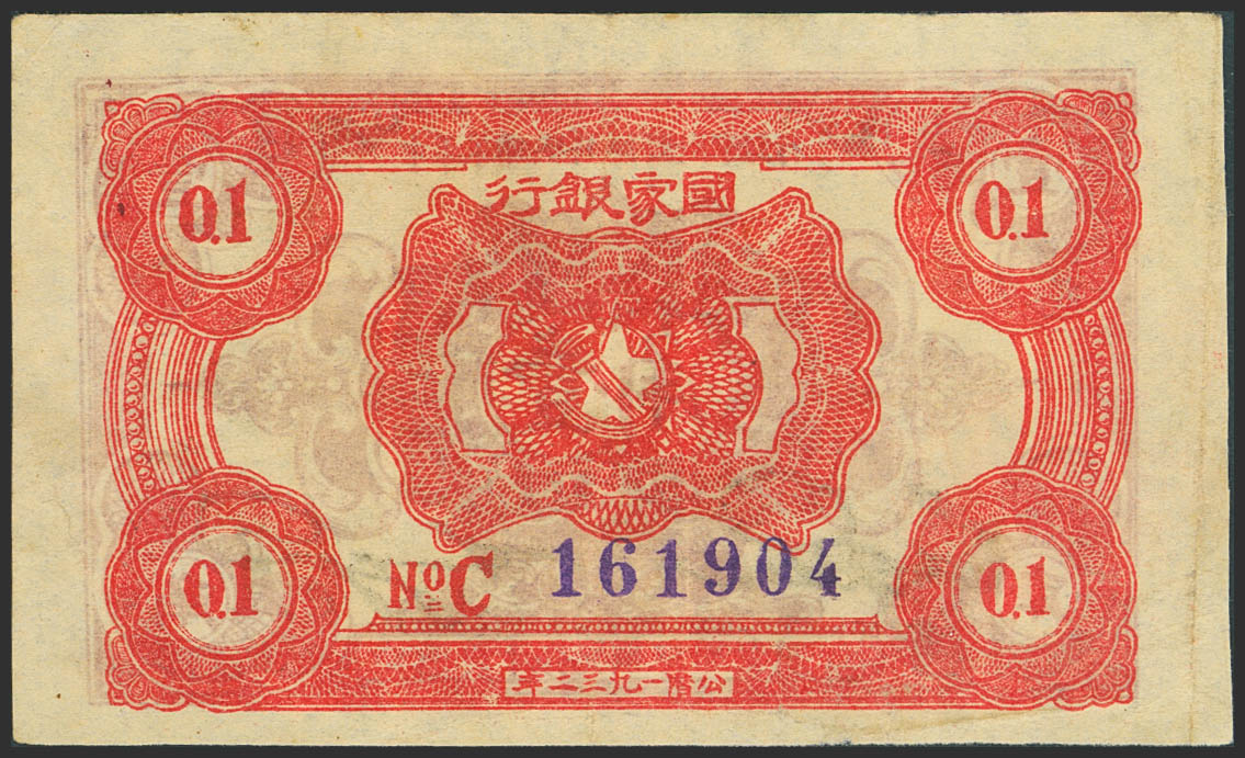 CHINA. 1 Chiao. 1932. Chinese Soviet Republic National Bank. Counterfeit. (Pick: S3251x). Extremely Fine.