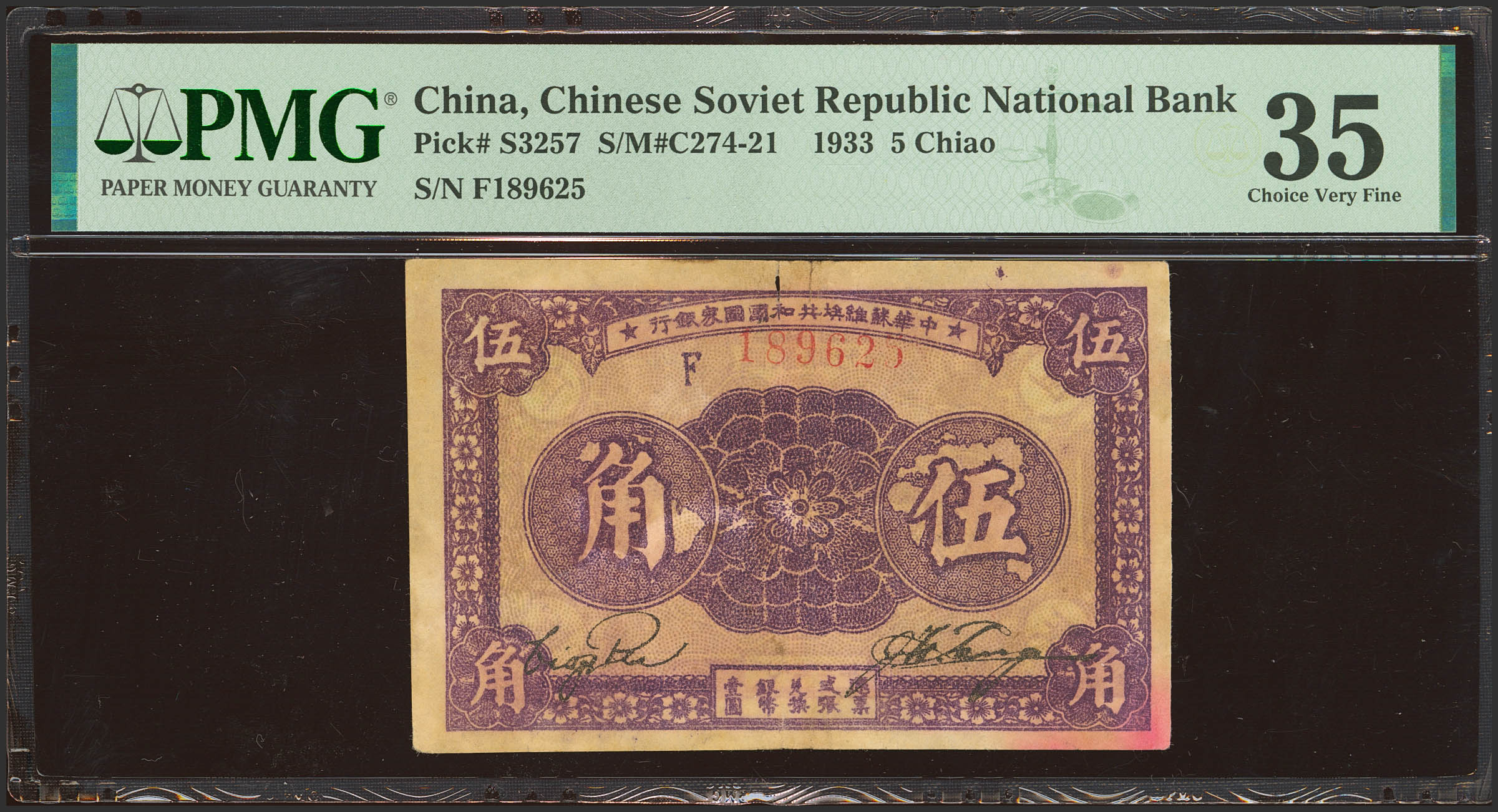 CHINA. 5 Chiao. 1933. Chinese Soviet Republic National Bank. (Pick: S3258, SM: C274-21). PMG35 (split, ink).