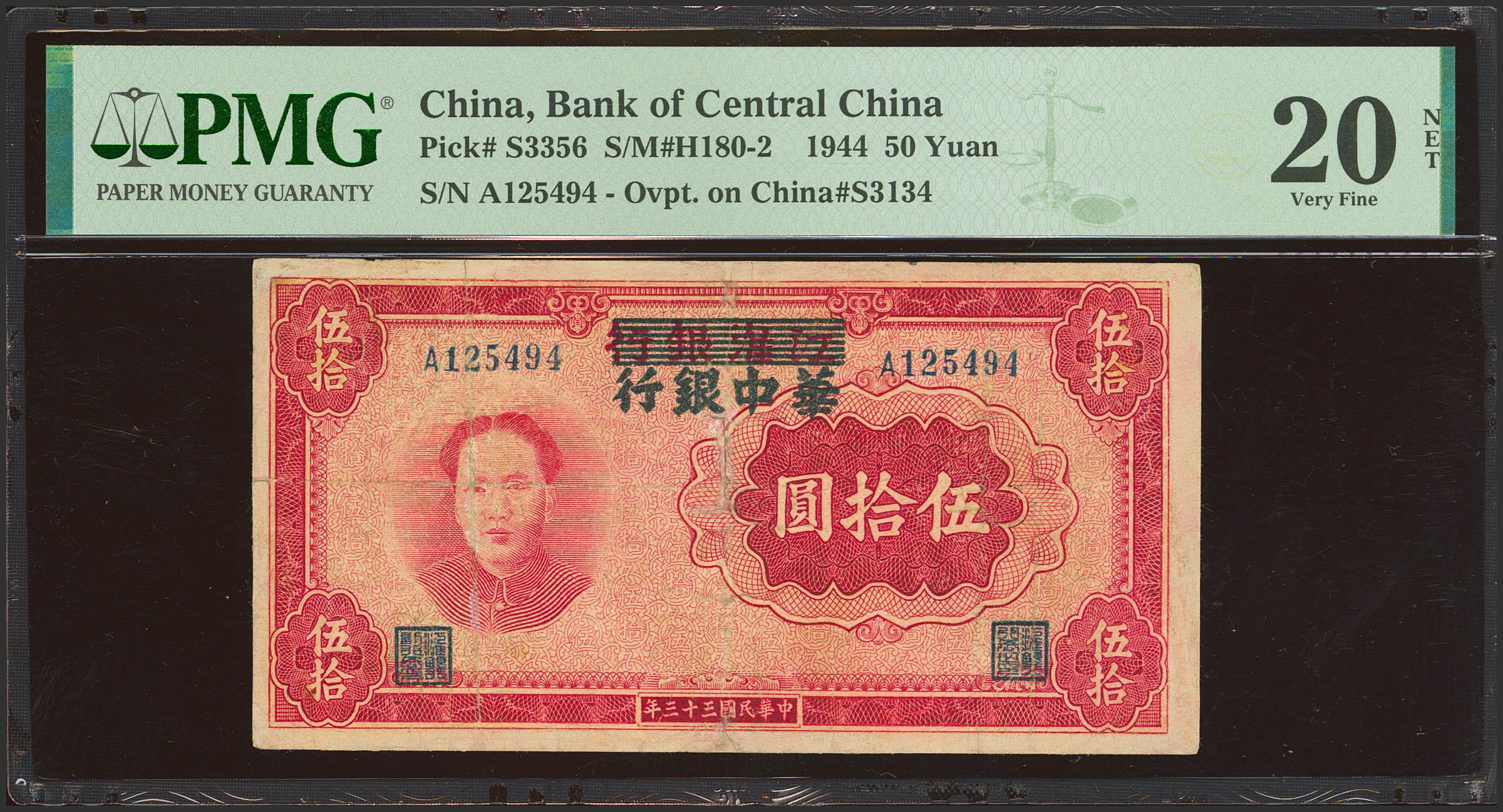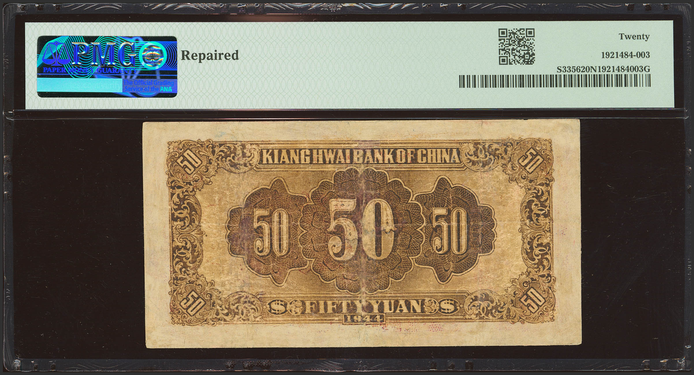 CHINA. 50 Yuan. 1944. Central Bank of China. (Pick: S3356, SM: H180-2). PMG20NET (repaired).