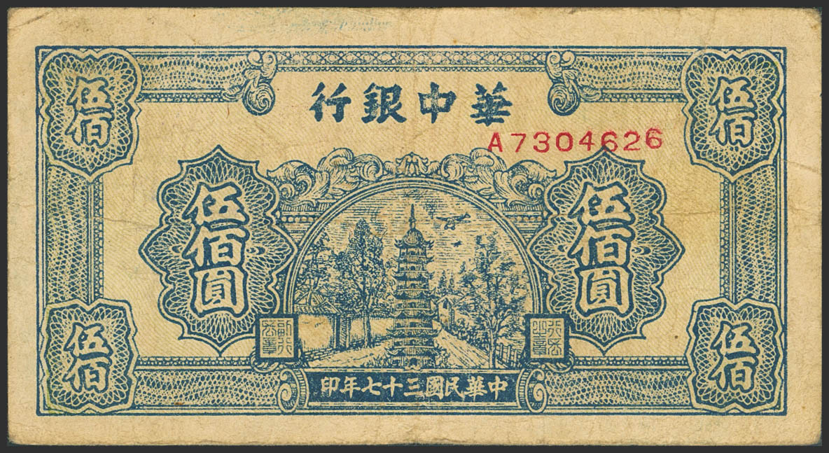CHINA. 500 Yuan. 1948. Central Bank of China. (Pick: S3406). Very Fine.
