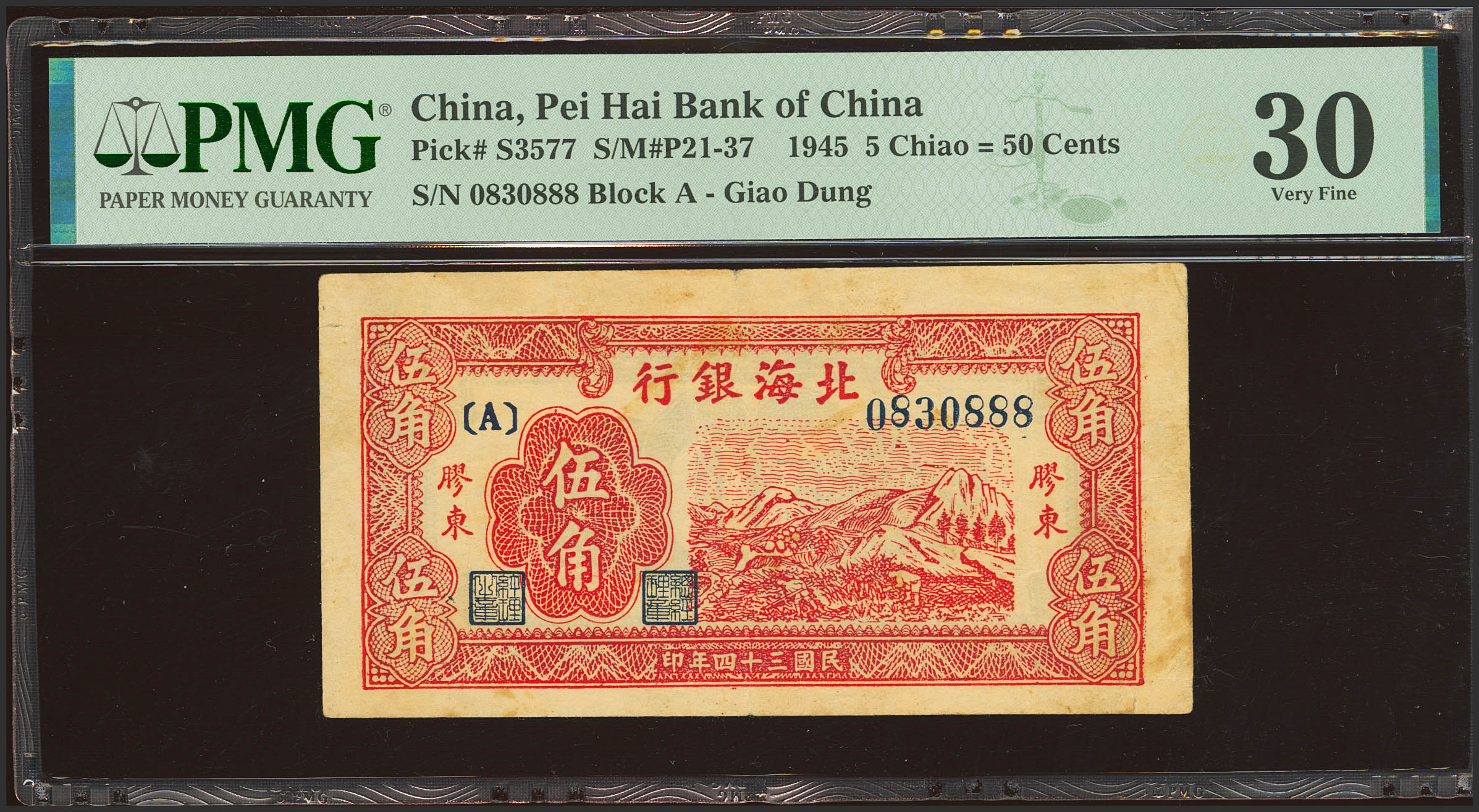 CHINA. 50 Cents. 1945. Peihai Bank. (Pick: S3577, SM: P21-37). PMG30 (small tears).