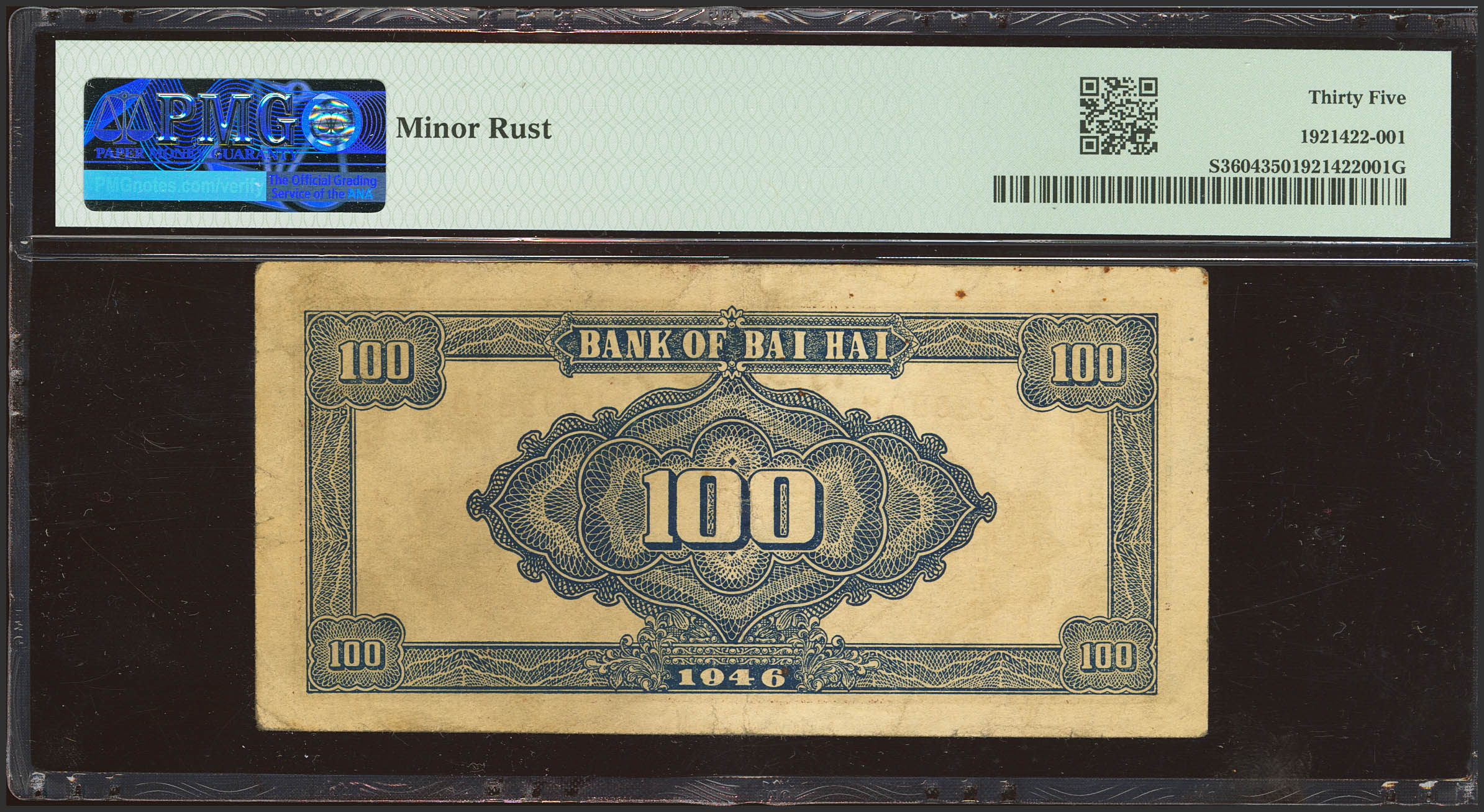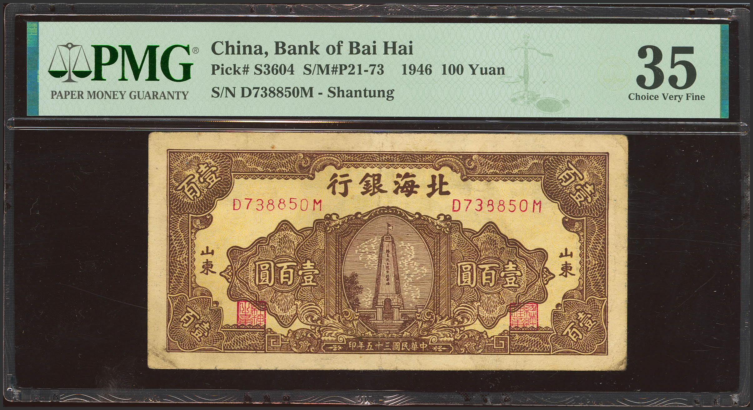 CHINA. 100 Yuan. 1946. Bank of Bai Hai. (Pick: S3604, SM: P21-73). PMG35 (minor rust).
