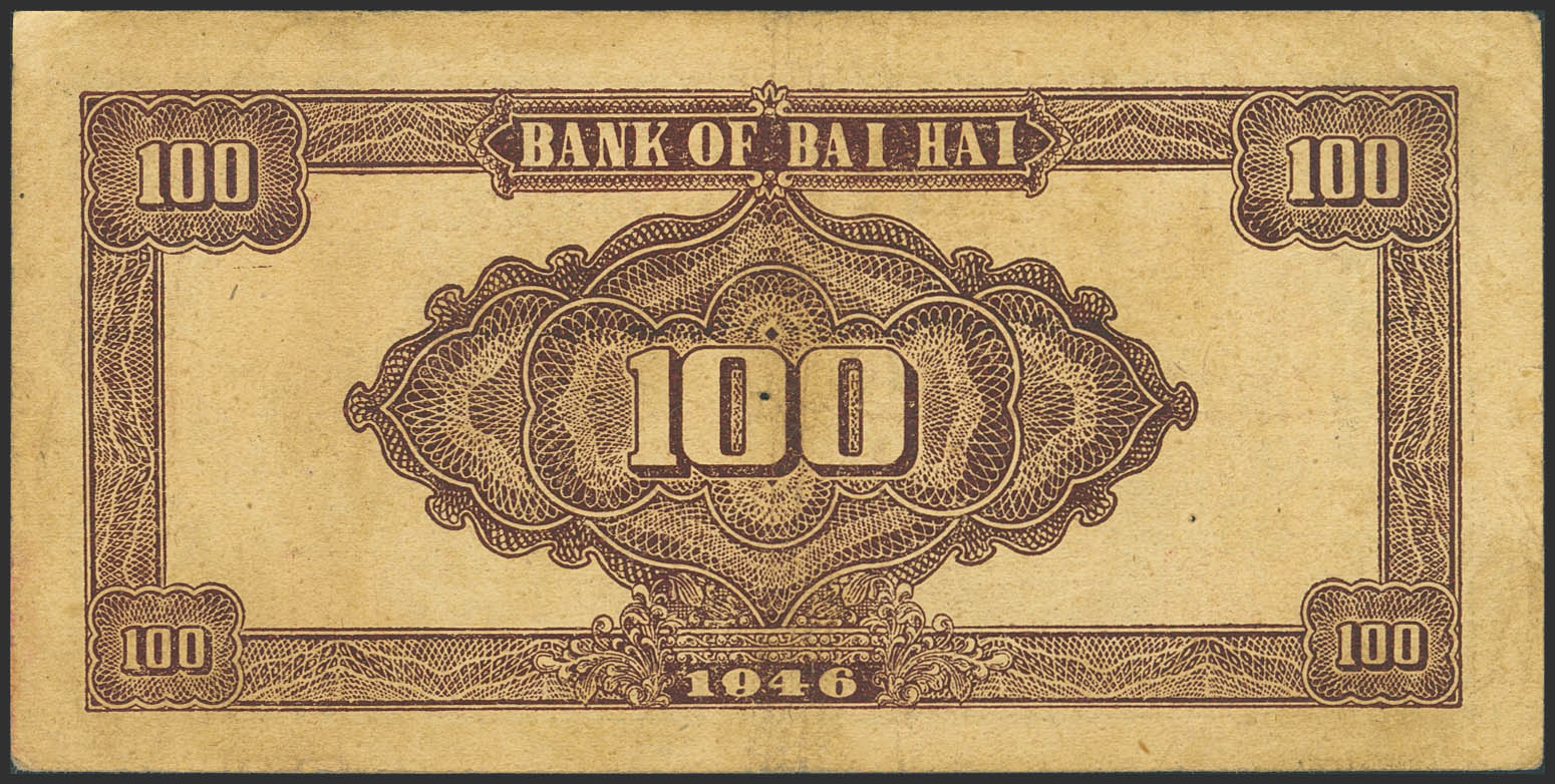 CHINA. 100 Yuan. 1946. Bank of Bai Hai. (Pick: S3607). Very Fine.