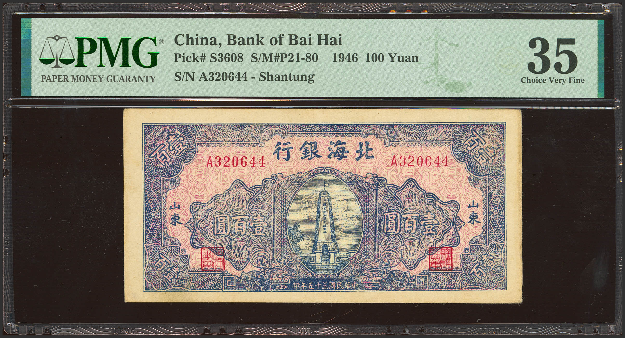 CHINA. 100 Yuan. 1946. Bank of Bai Hai. (Pick: S3608, SM: P21-80). PMG35.