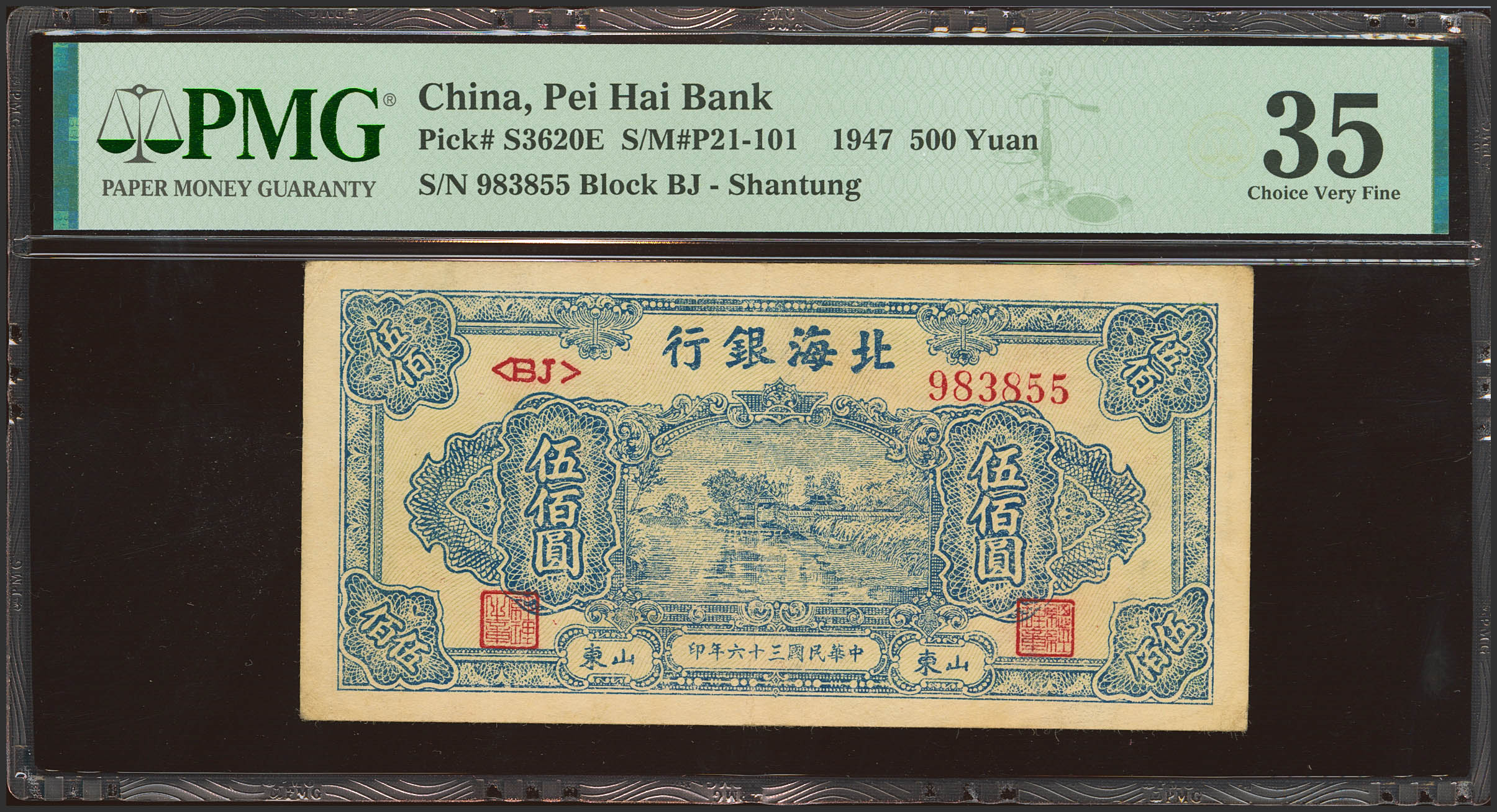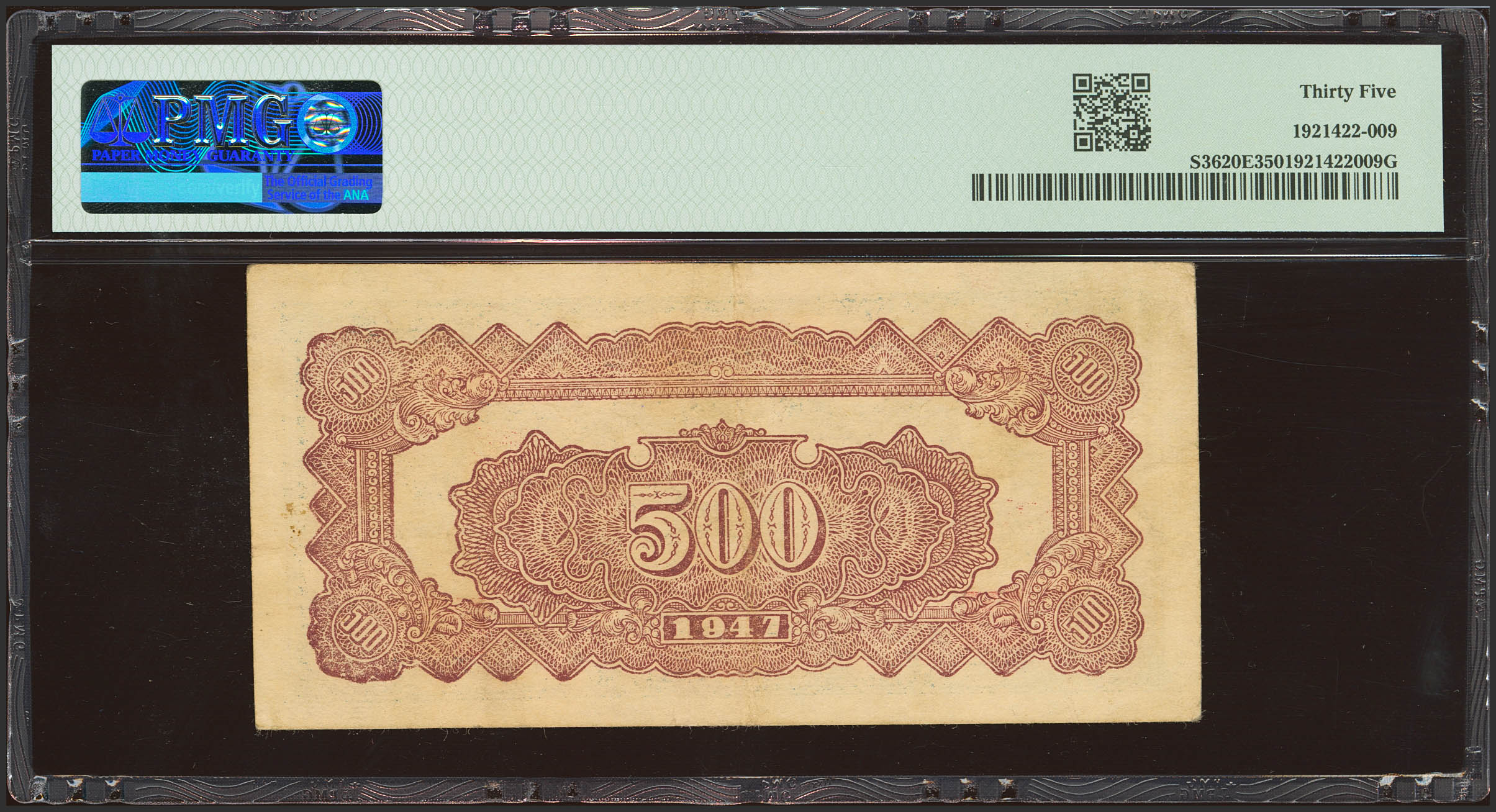 CHINA. 500 Yuan. 1947. Peilhai Bank. (Pick: S3620E, SM: P21-101). PMG35.