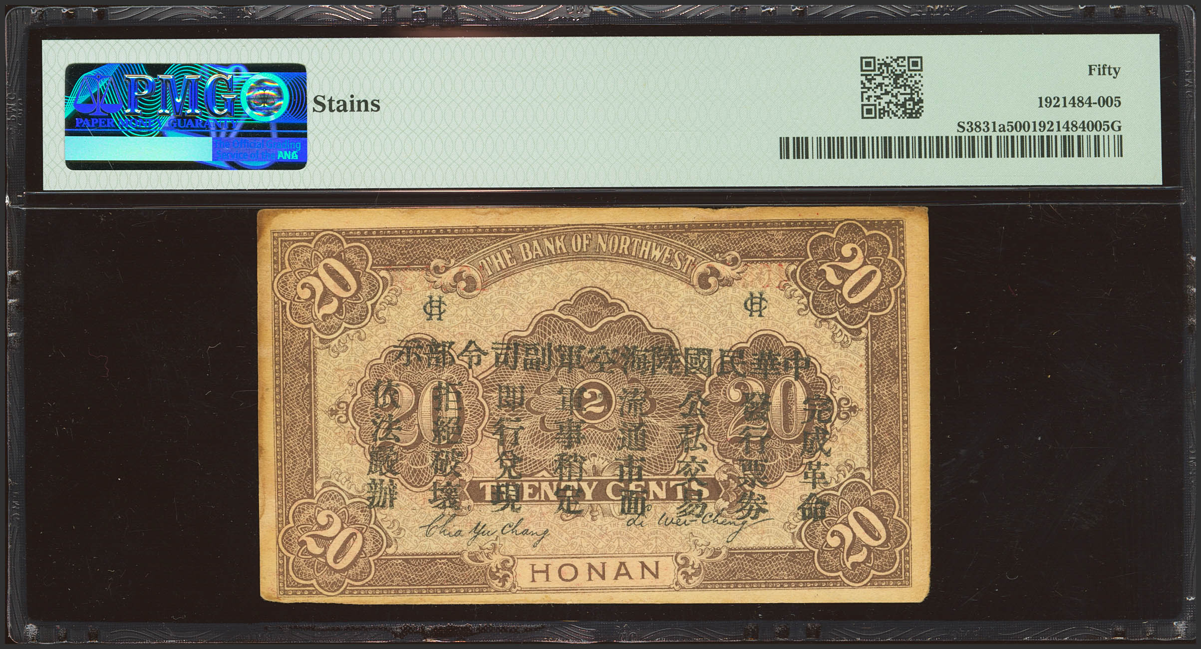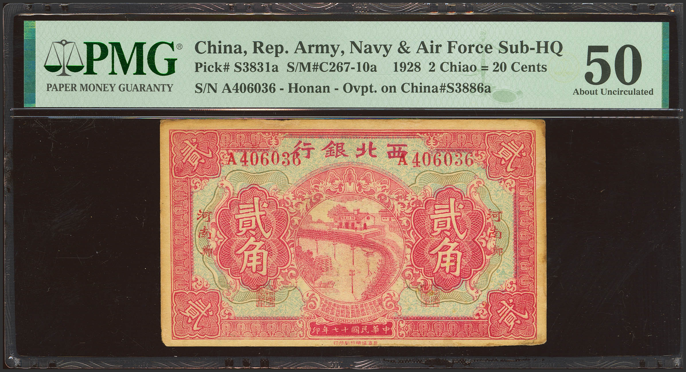 CHINA. 20 Cents. 1928. Chinese Republic Army, Navy and Air Force Sub-Headquarters. (Pick: S3831a, SM: C267-10a). PMG50 (stains).