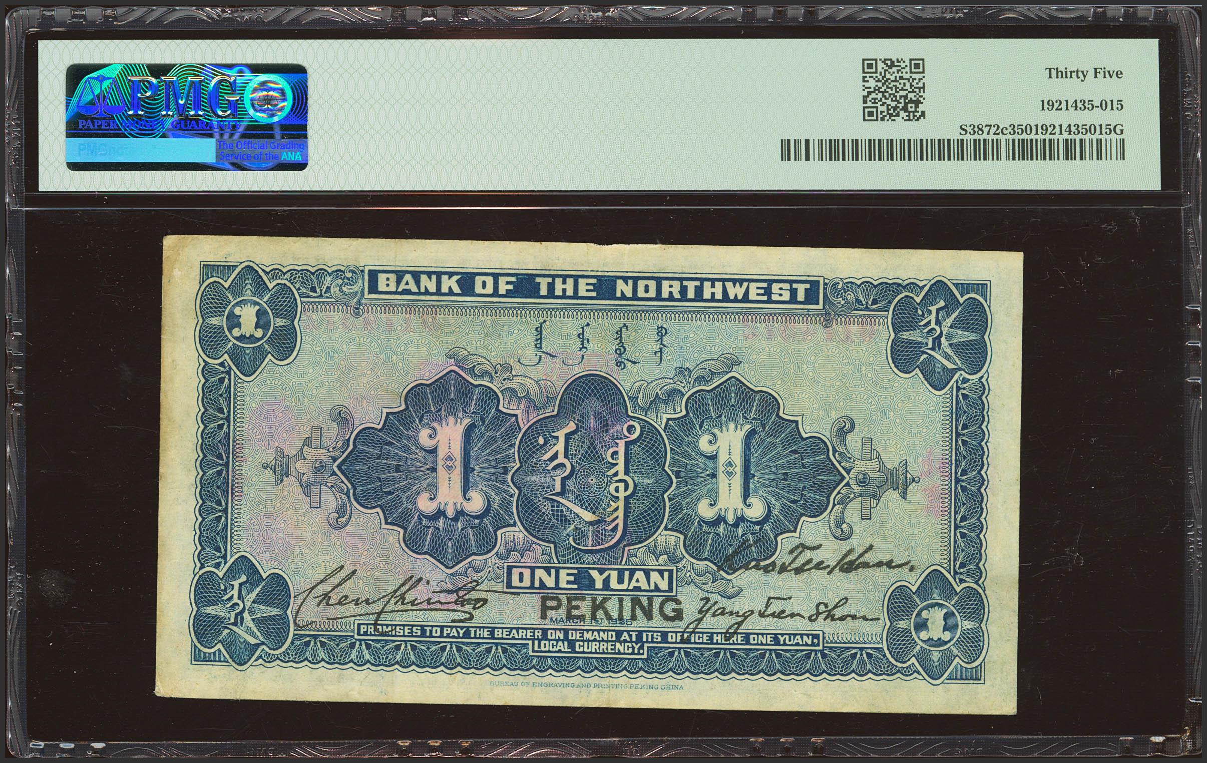 CHINA. 1 Yuan. 1 March 1925. Bank of the Northwest. Peking. (Pick: S3872c, SM: H77-31c). PMG35.
