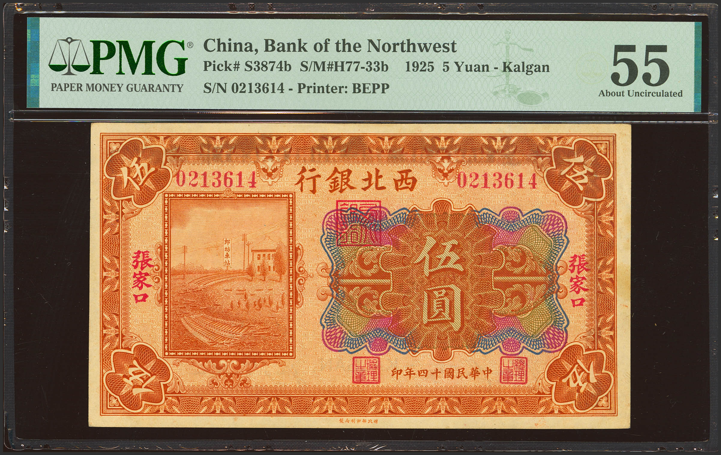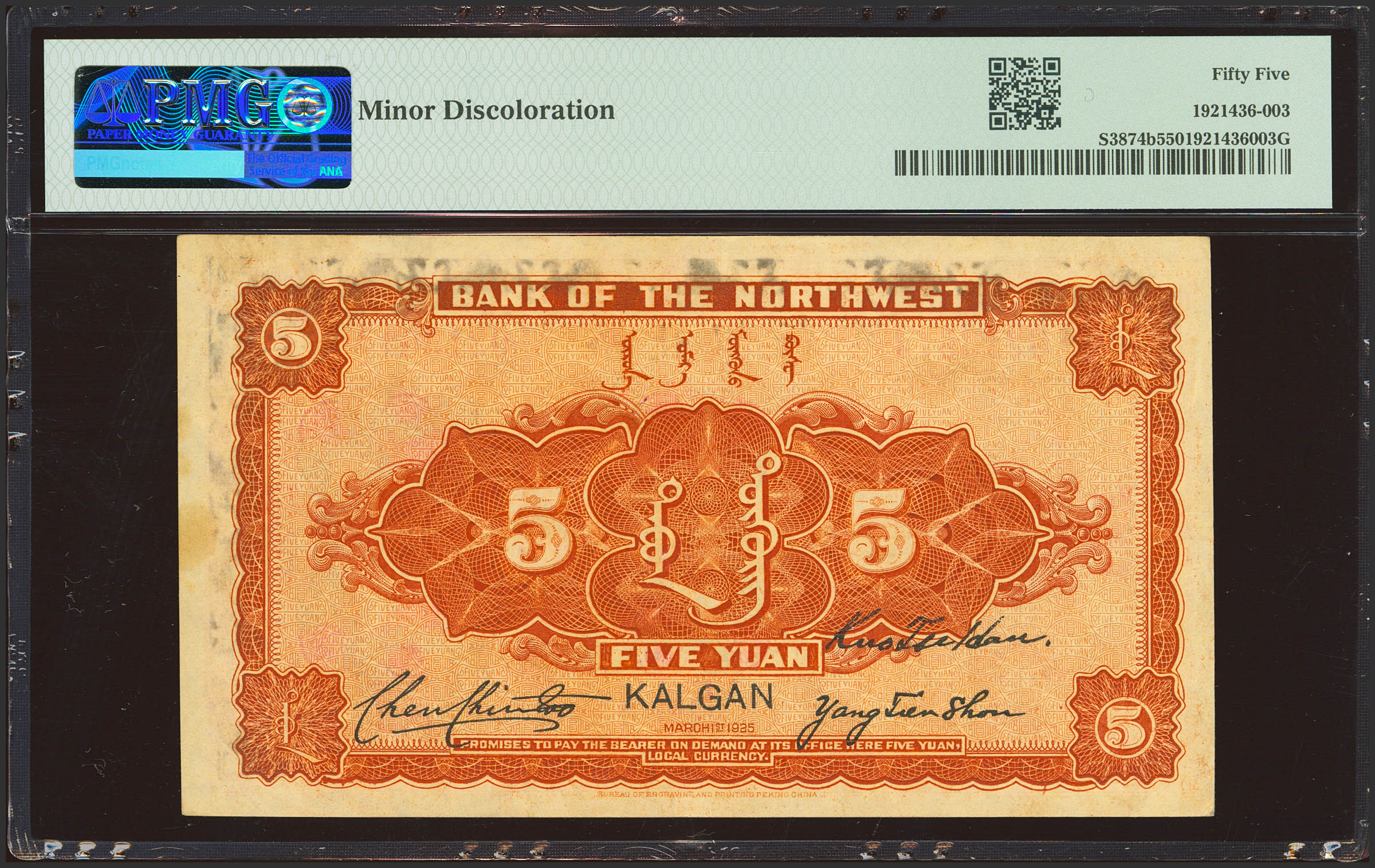 CHINA. 5 Yuan. 1 March 1925. Bank of the Northwest. Kalgan. (Pick: S3874b, SM: H77-33b). PMG55 (minor discoloration).