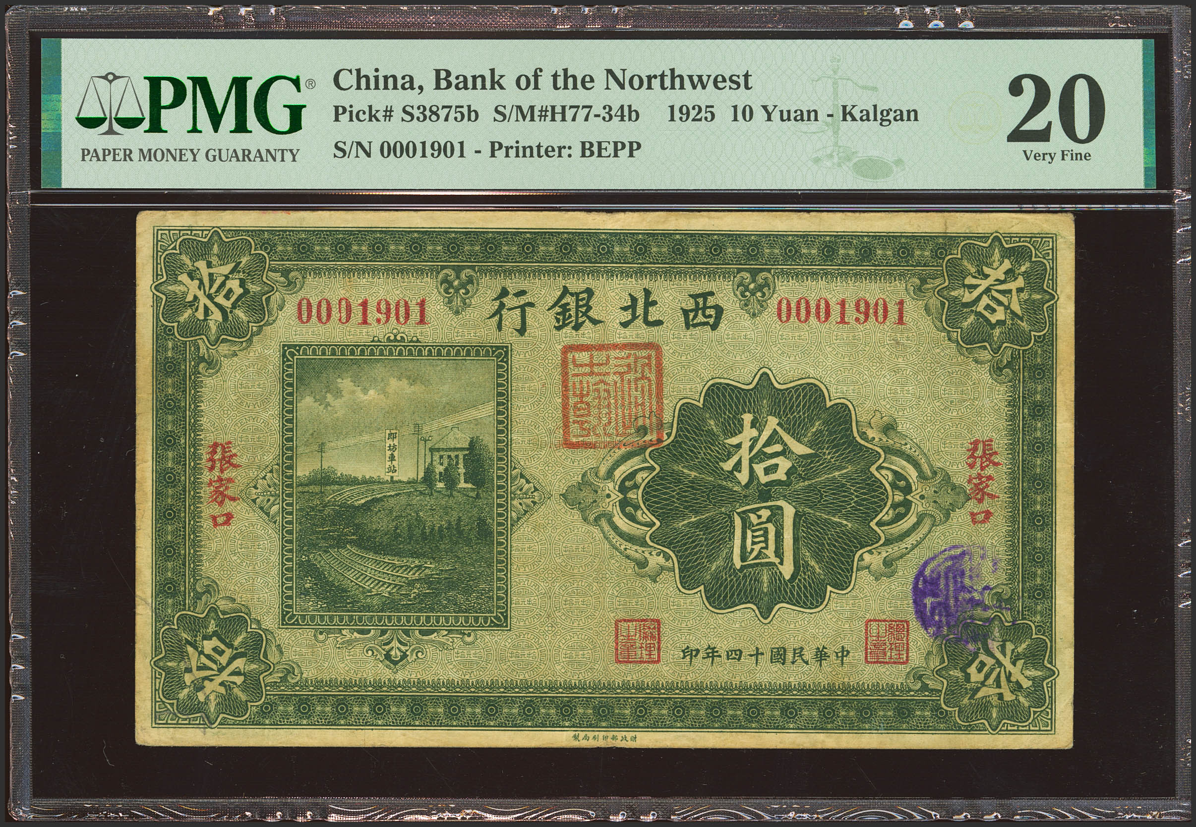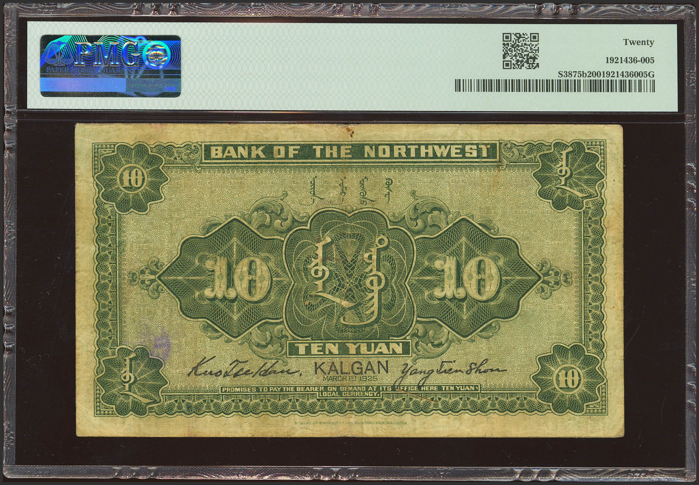 CHINA. 10 Yuan. 1 March 1925. Bank of the Northwest. Kalgan. (Pick: S3875b, SM: H77-34b). PMG20.