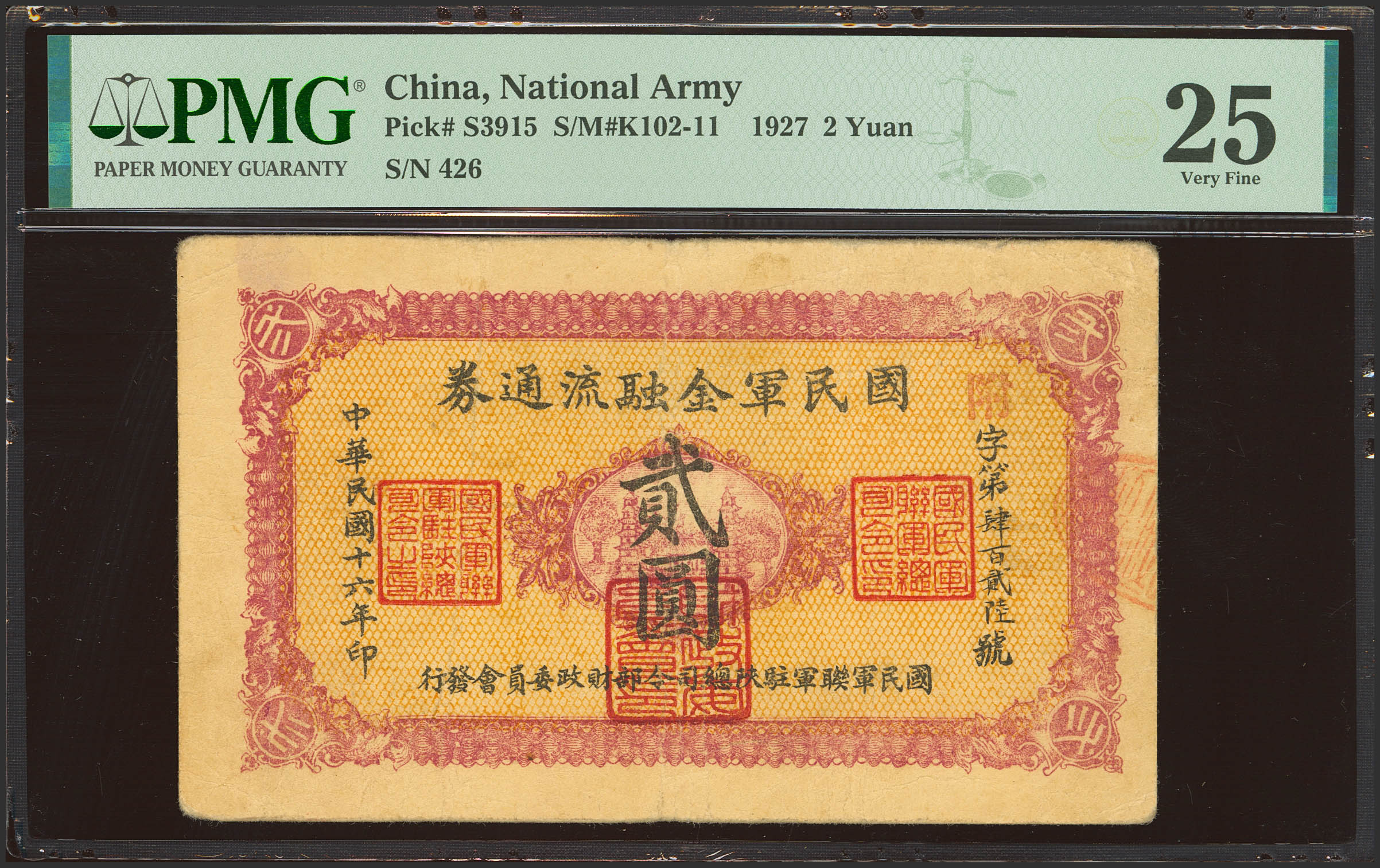 CHINA. 2 Yuan. 1927. National Army. (Pick: S3915, SM: K102-11). PMG25.