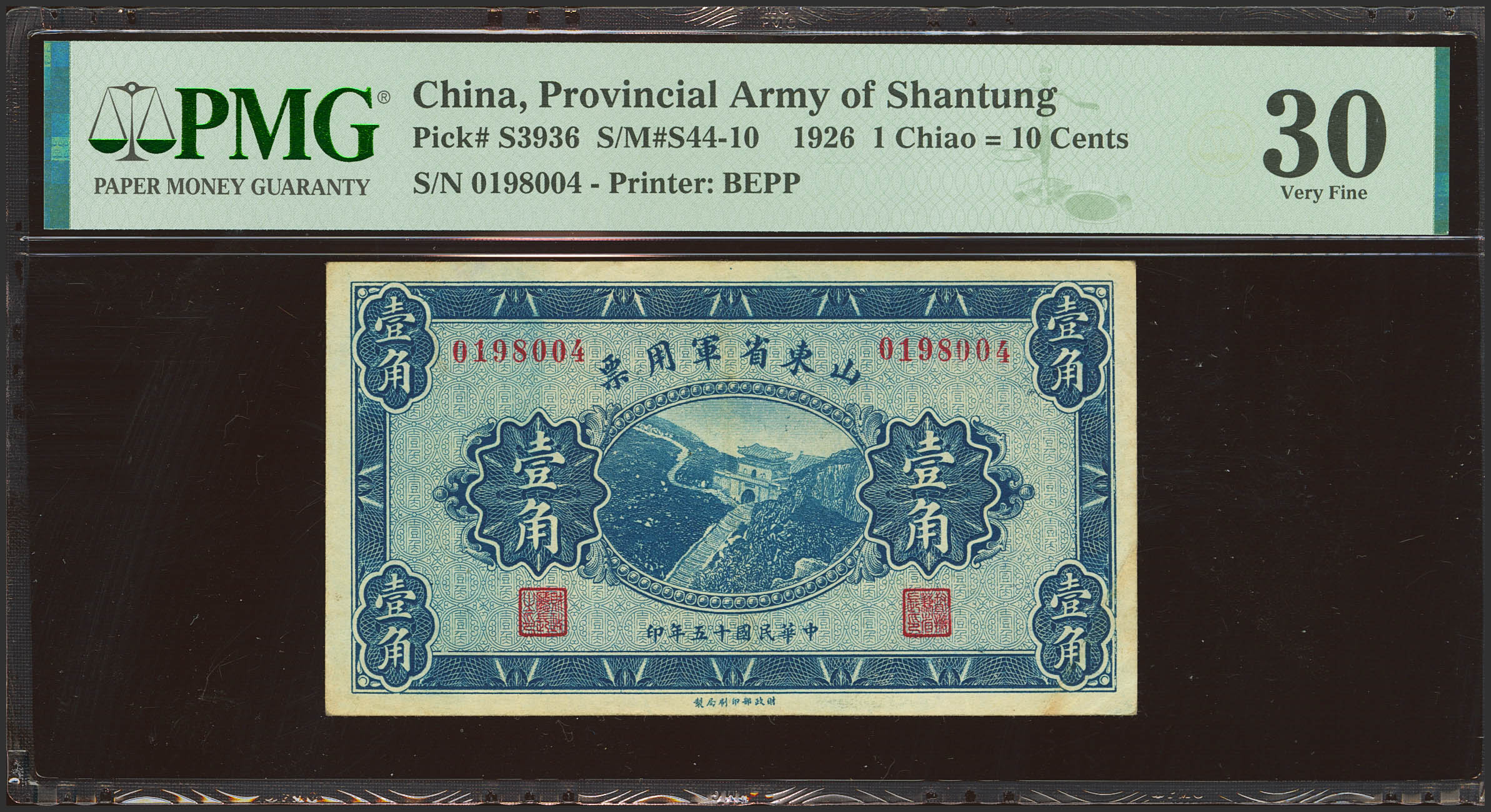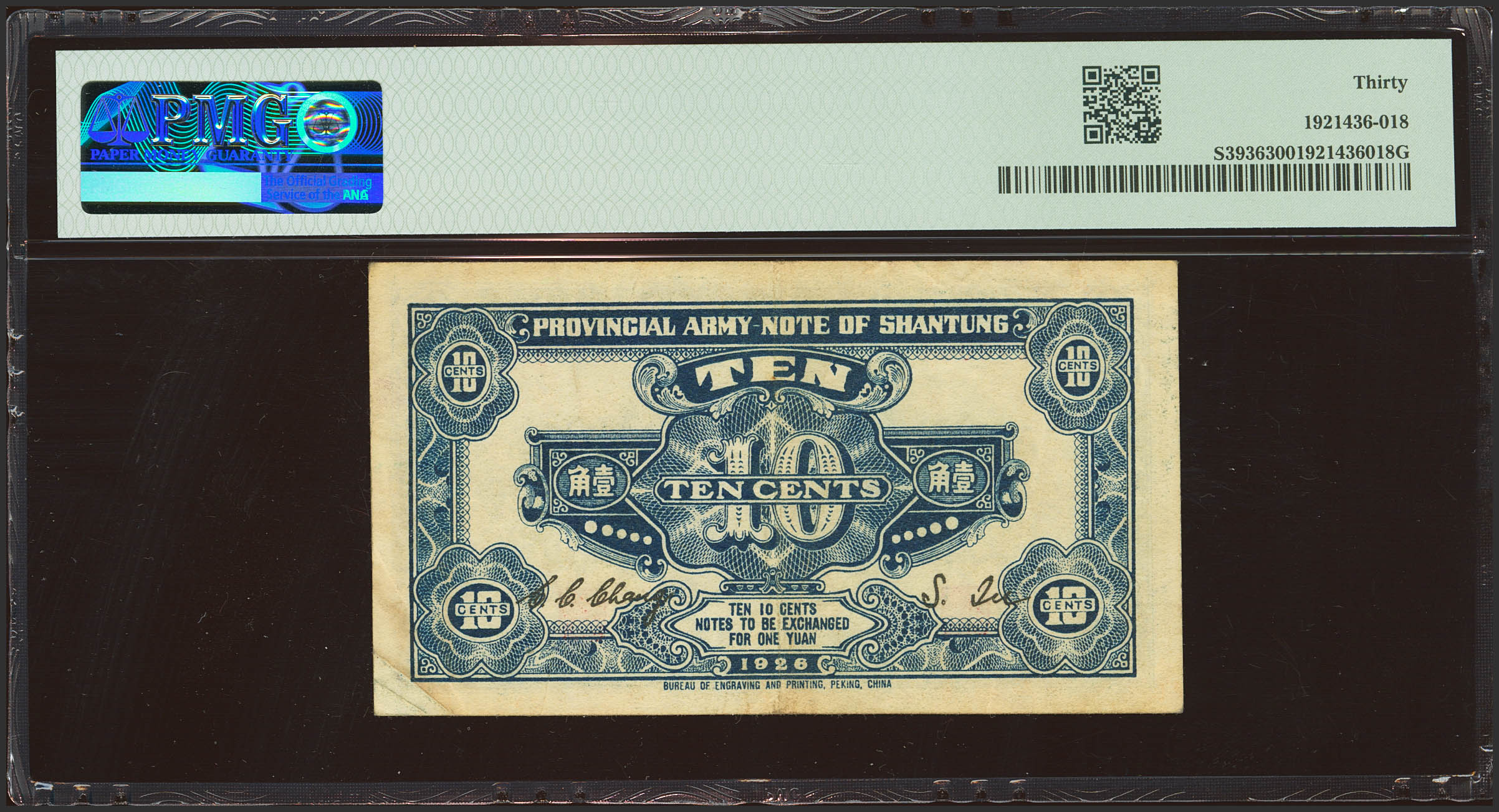 CHINA. 10 Cents. 1926. Provincial Army of Shangtong. (Pick: S3936, SM: S44-10). PMG30.