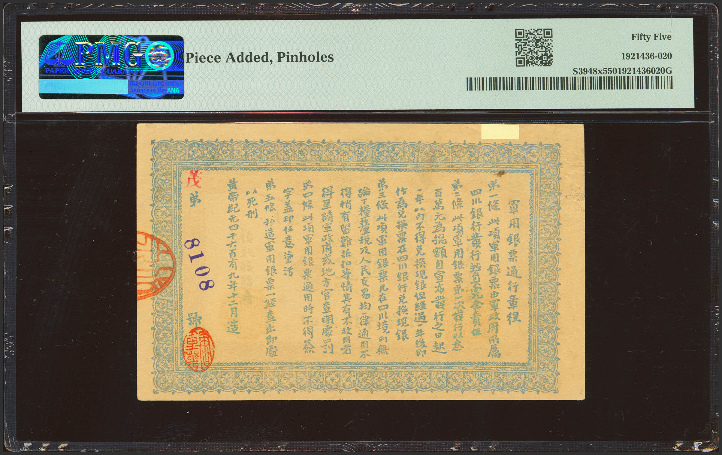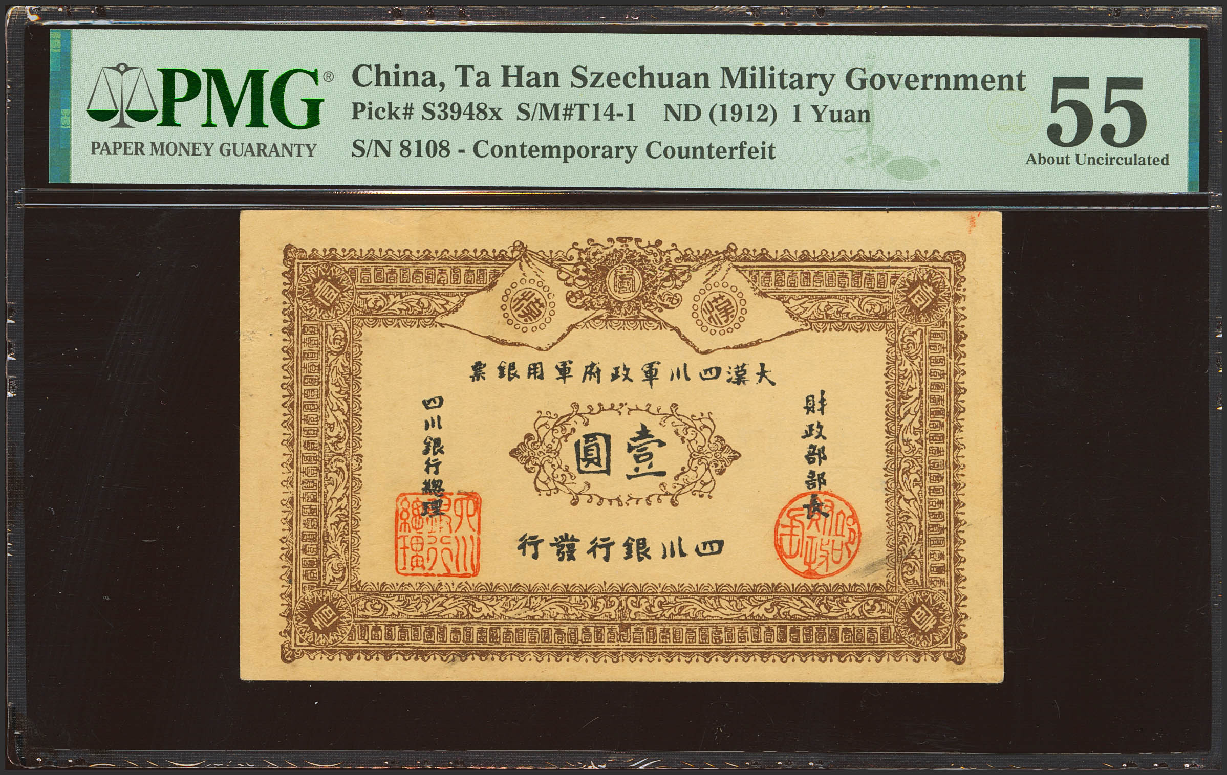 CHINA. 1 Yuan. (1912ca). Ta Han Szechuan Military Government. (Pick: S3948, SM: T14-1). PMG55 (pieces added, pinholes).
