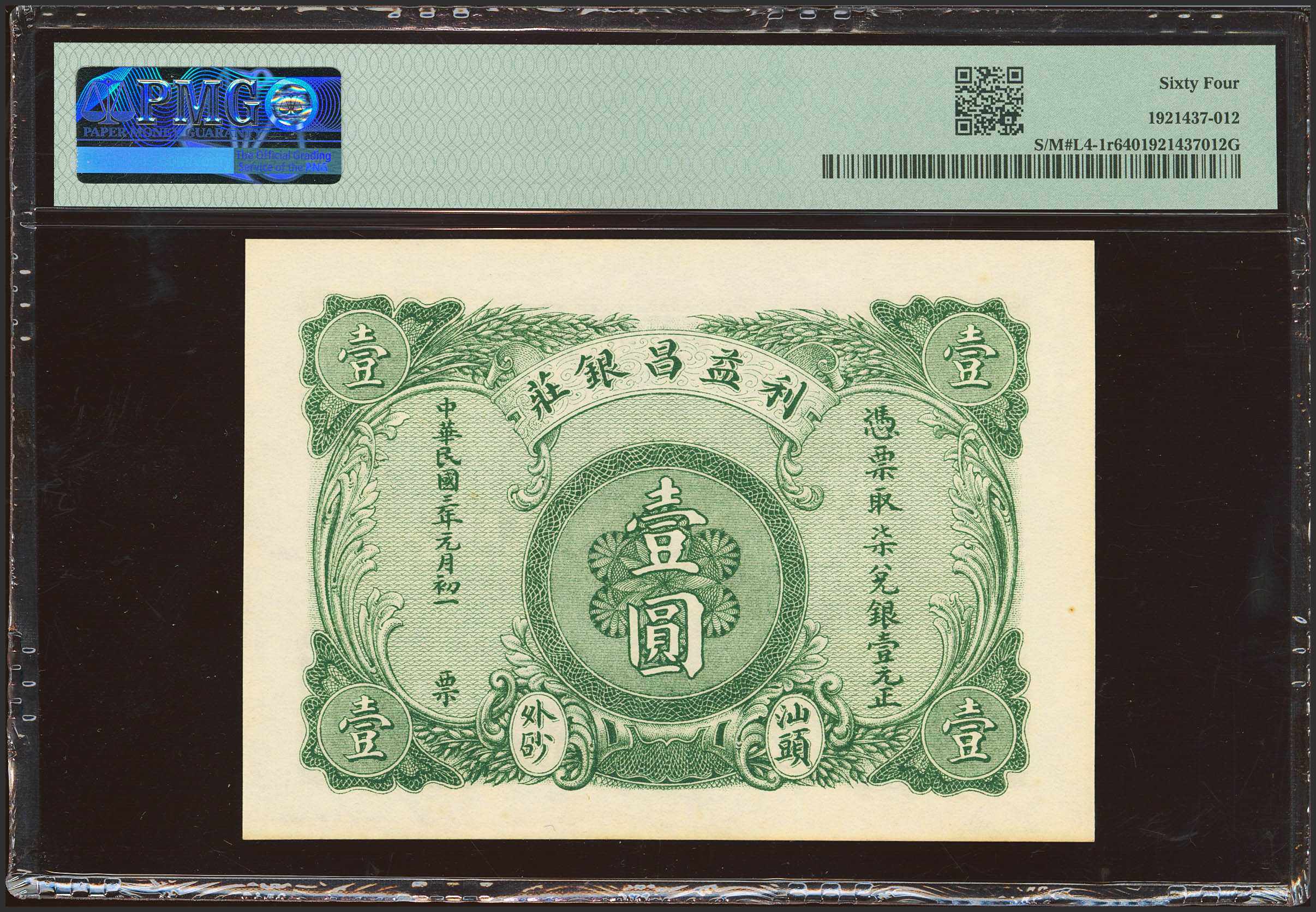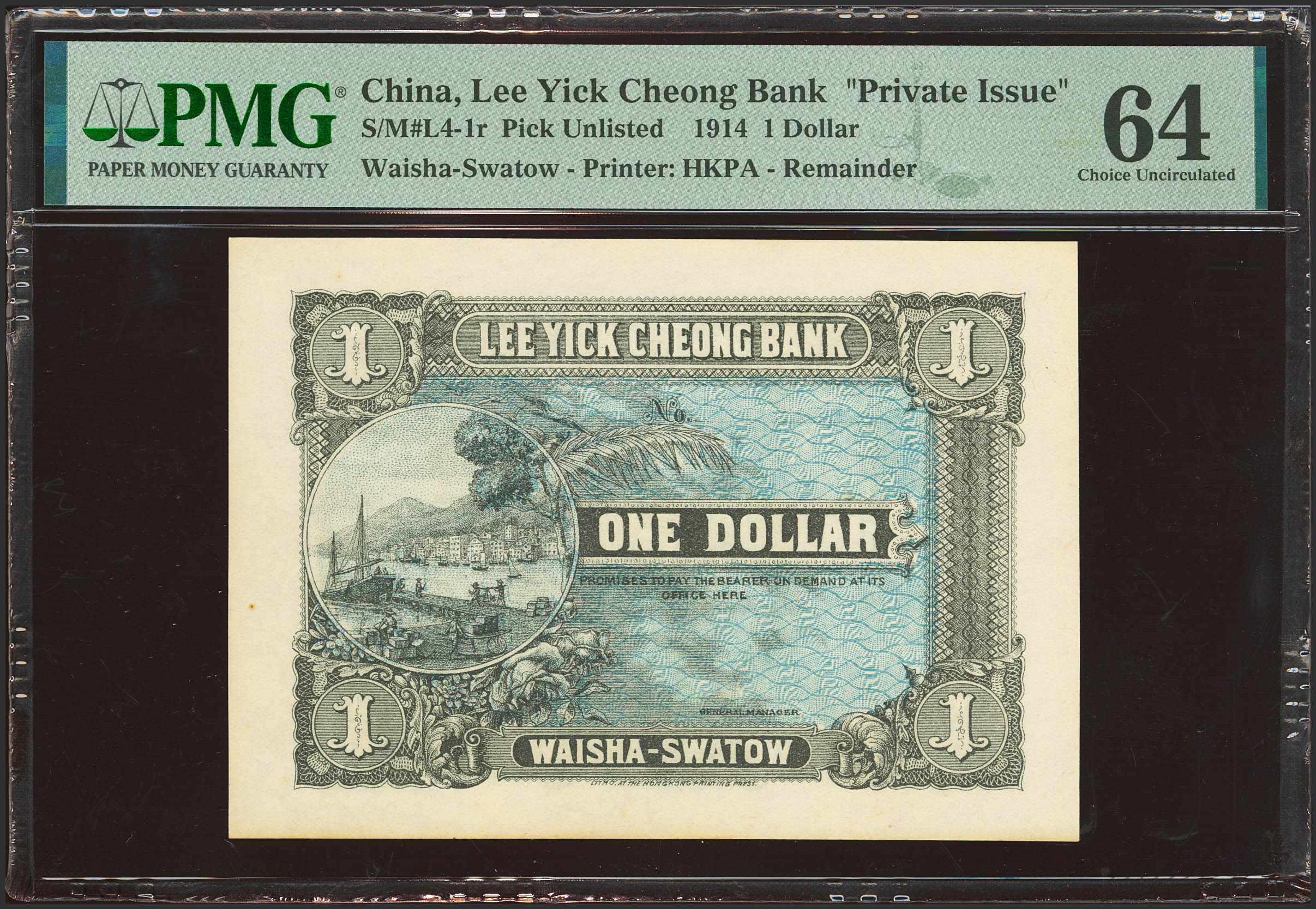 CHINA. 1 Dollar. (1914ca). Lee Yick Cheong Bank. (Pick: Unlisted. S/M: L4-1r). PMG64.