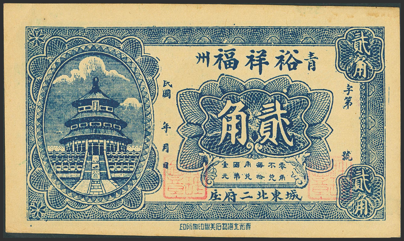 CHINA. 10 Cents. No Date. Yu Xiang Fu. Quingzhou. Shandong. Private Issue. (Pick: Unlisted). Almost Uncirculated.