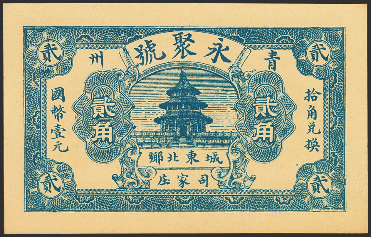 CHINA. 20 Cents. No Date. Yung Chu Hao. Chingchou. Private Issue. (Pick: Unlisted). Uncirculated.