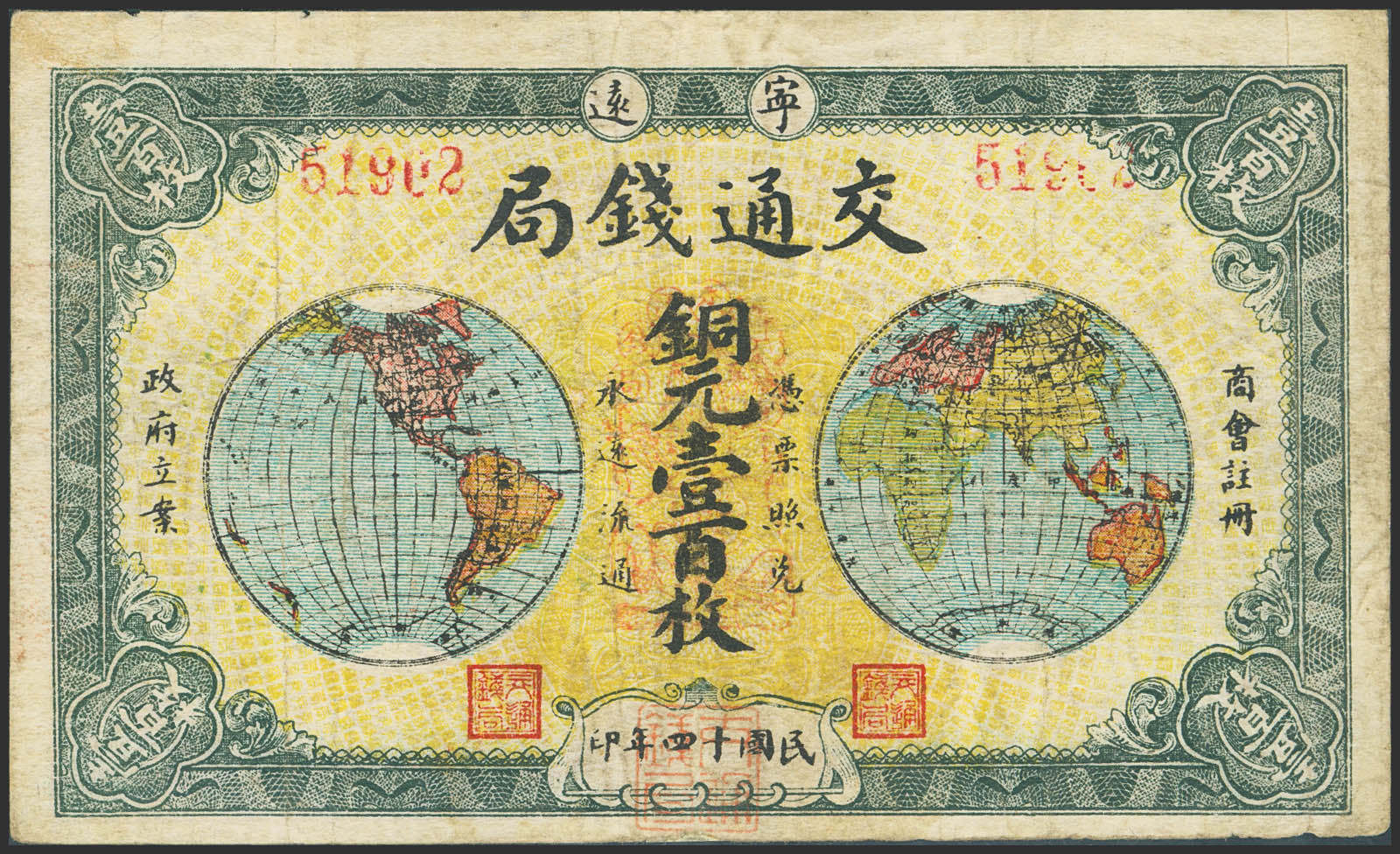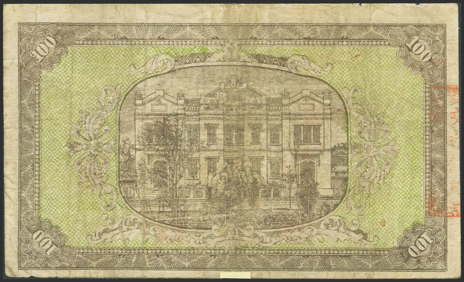 CHINA. 100 Coppers. 1925. Shang Hui She Bang. Private Issue. (Pick: Unlisted). Adhesive tape added to the tear on the bottom edge. More than Very Fine.