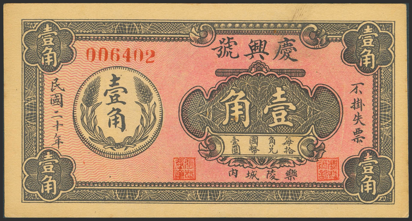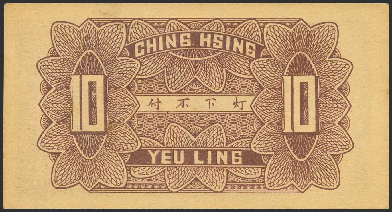 CHINA. 10 Cents. 1931. Ching Hsing. Yeo Ling. Private Issue. (Pick: Unlisted). Uncirculated.