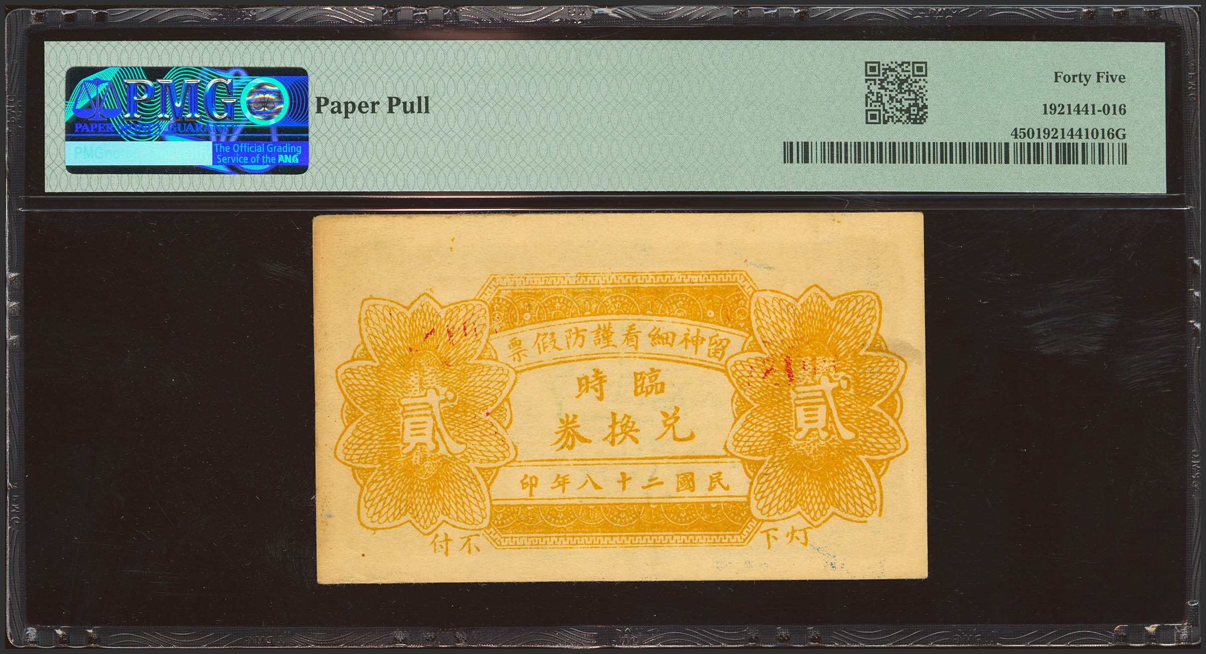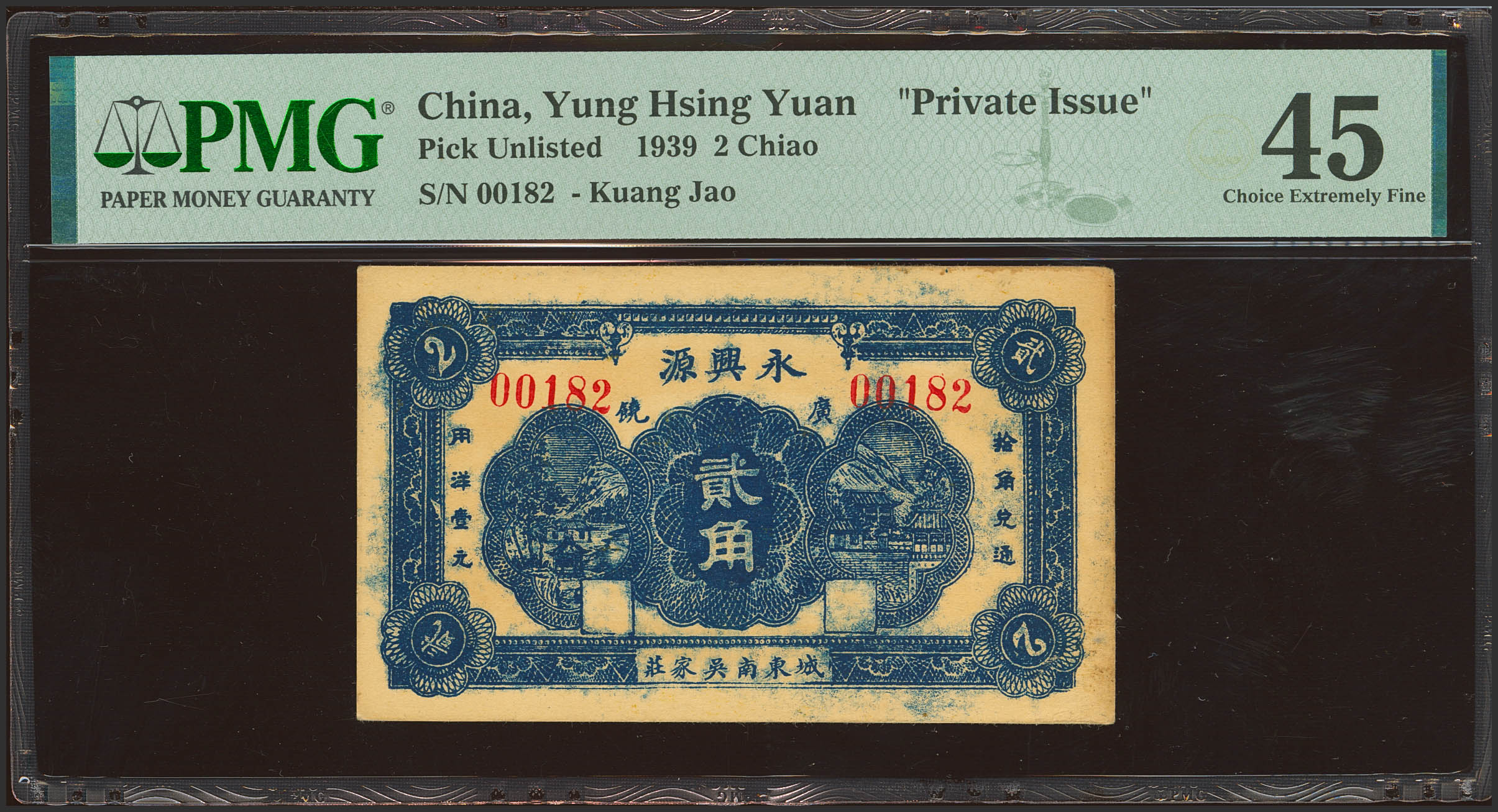 CHINA. 2 Chiao. No Date. Yong Yi Yuan, Shandong, Private Issue. (Pick: Unlisted). PMG45 (paper pull).