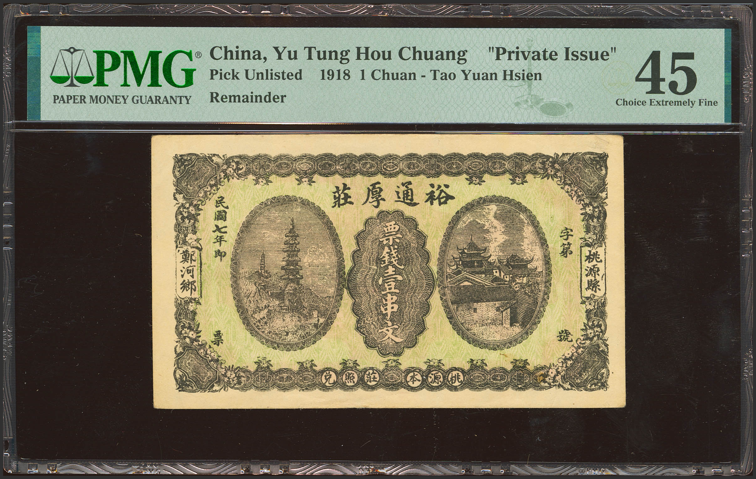 CHINA. 1000 Cash. 1918. Yu Tong Yuan. Zhuang. Shandong. Private Issue. (Pick: Unlisted). PMG45 (paper pull).