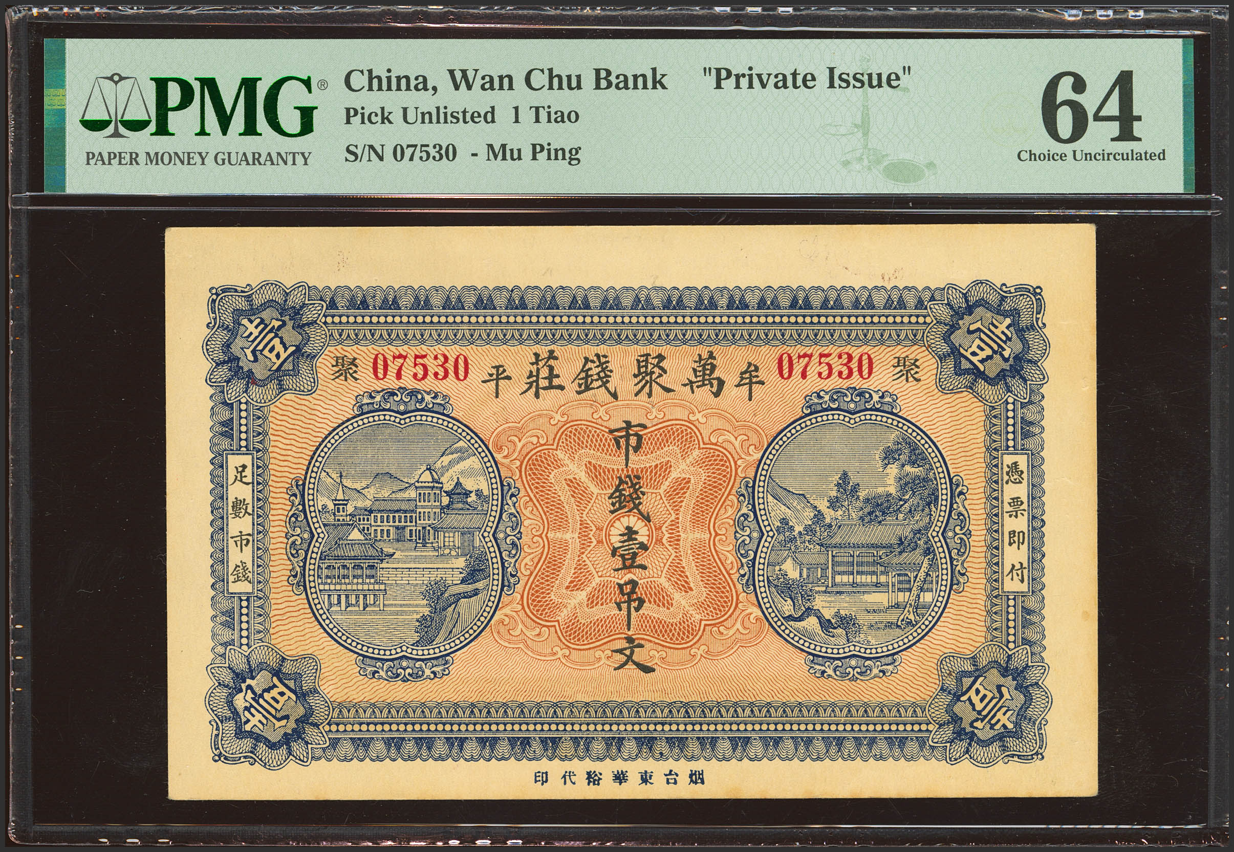 CHINA. 1 Tiao. No Date. Wan Chiong Chuang. Private Issue. (Pick: Unlisted). PMG64 (minor stains).