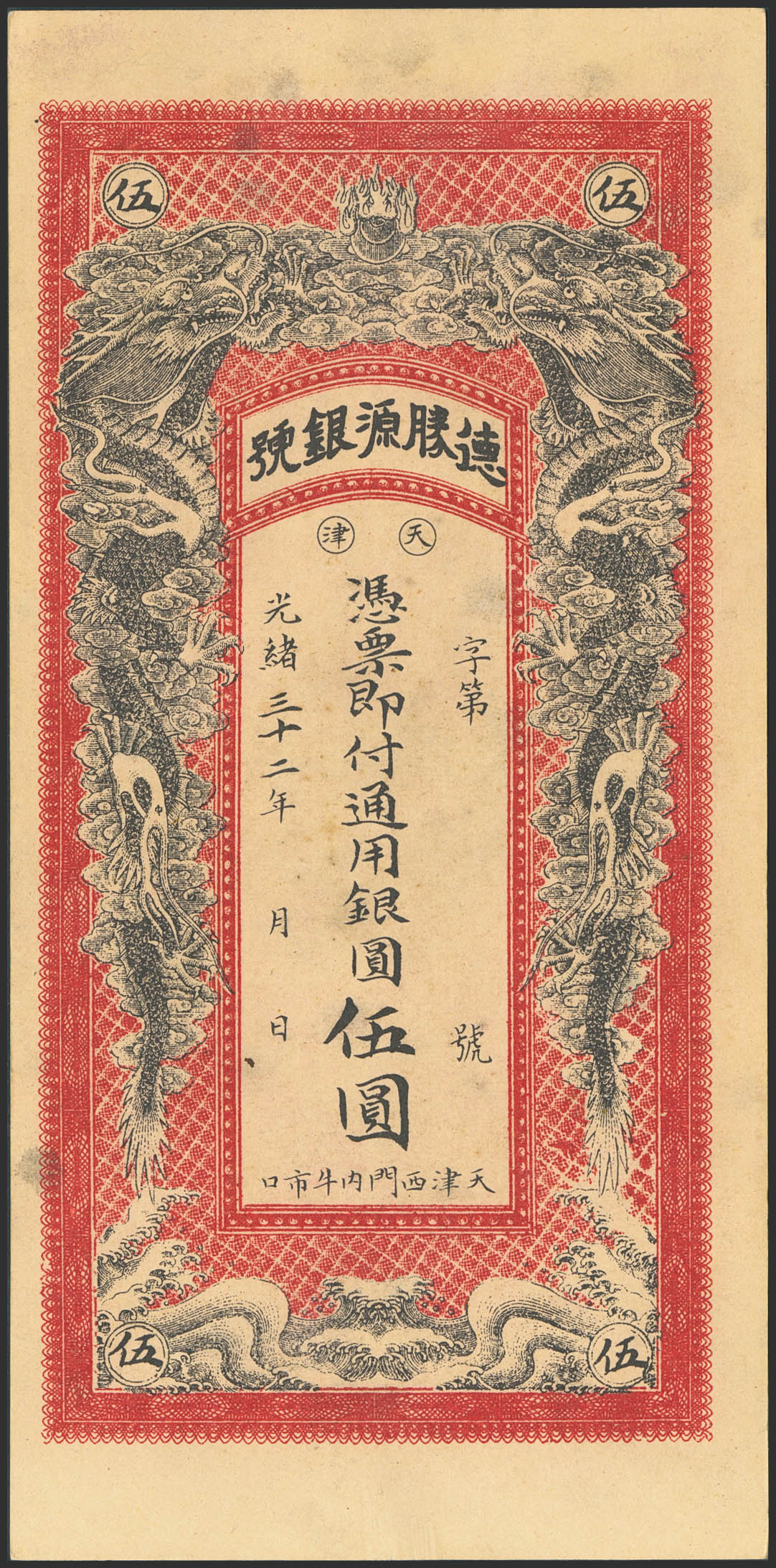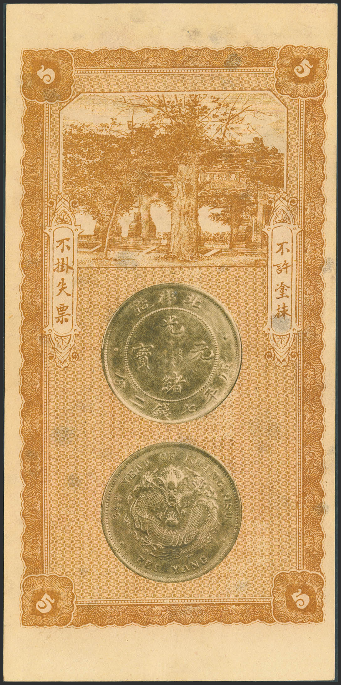 CHINA. 5 Dollars. No Date. Sheng Yuan Bank. Private Issue. (Pick: Unlisted). Almost Uncirculated.