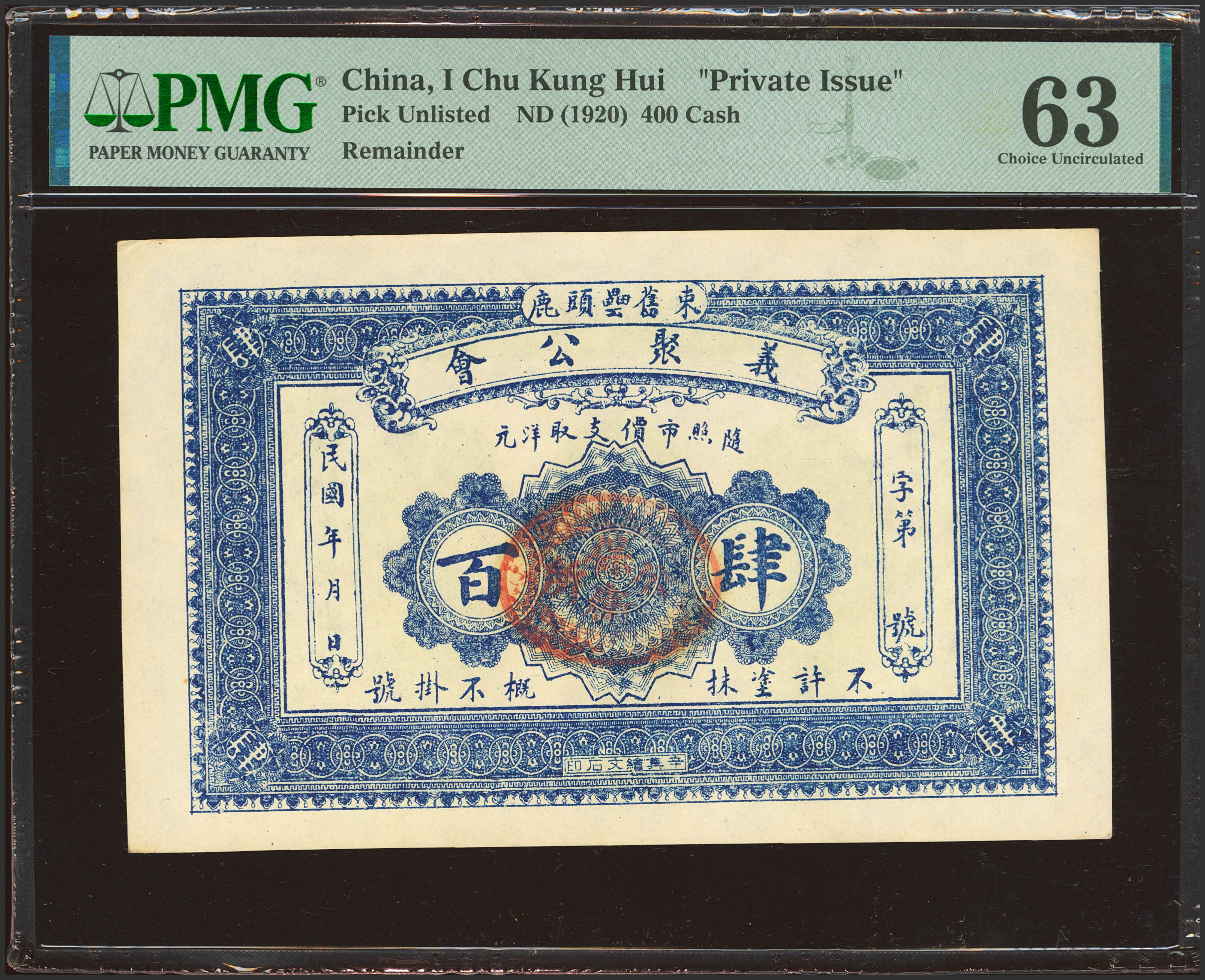 CHINA. 400 Units. No Date. Yi Hu. Shutu. Hebei. Private Issue. (Pick: Unlisted). PMG63.