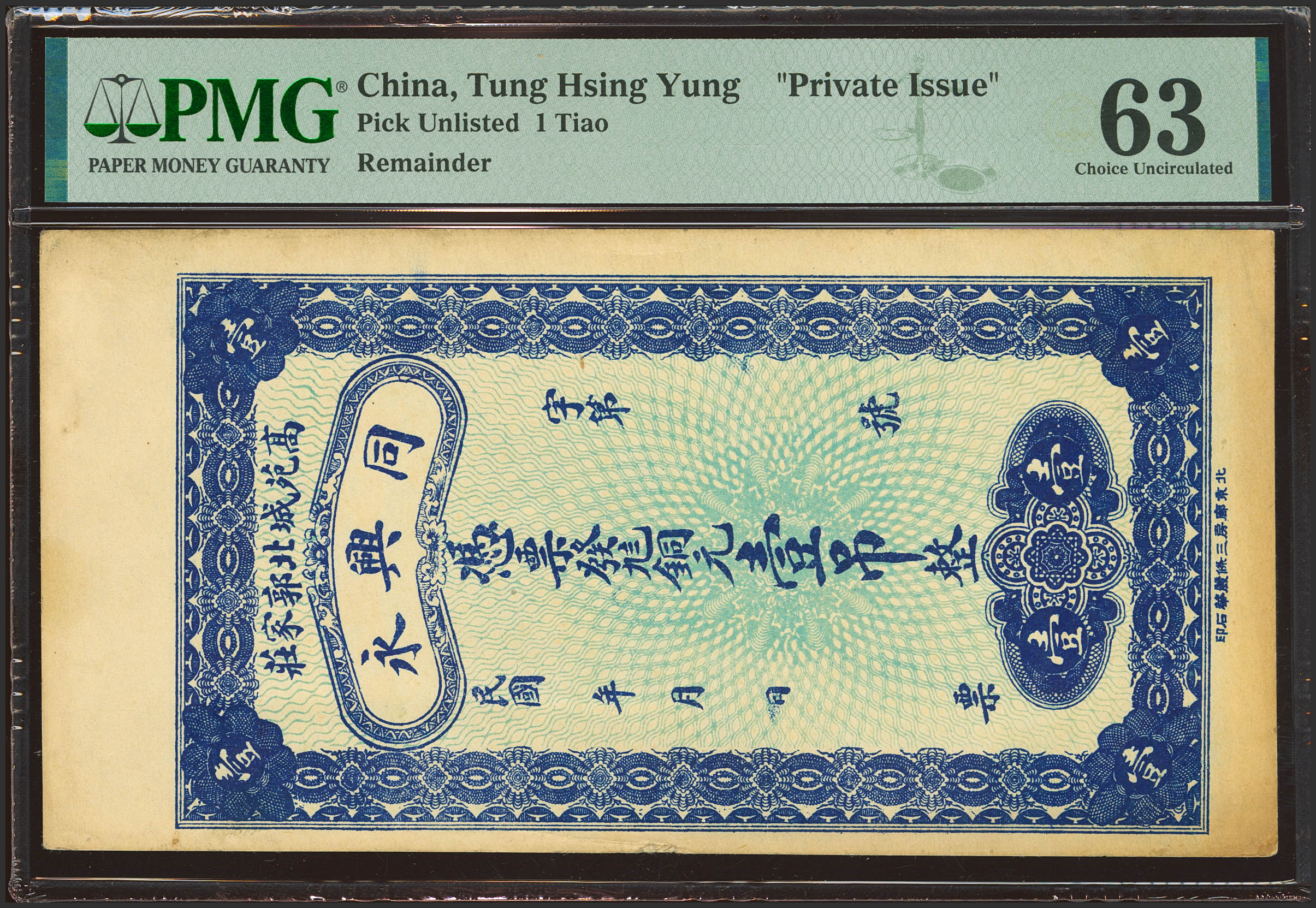 CHINA. 1 Tiao. (1900ca). Ting Hsing Yung. Private Issue. (Pick: Unlisted). PMG63 (minor toning).